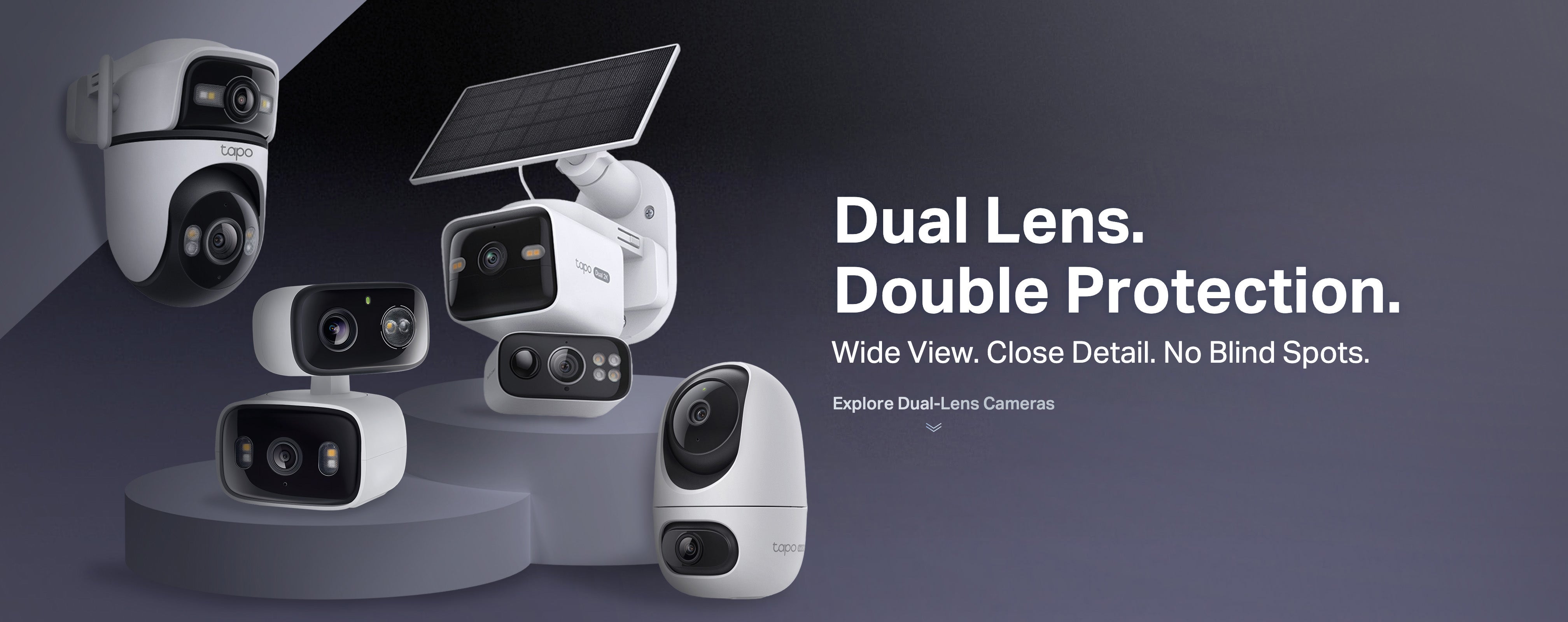 | Tapo C645D KIT | 2K Dual-Lens Pan/Tilt Security Camera Kit | Tapo C545D | Outdoor Dual Lens Pan/Tilt Security Camera | Tapo C246D | 2K 3MP Indoor/Outdoor Dual Lens Pan/Tilt Security Camera | Tapo C245D | Dual Lens Pan/Tilt Security Camera | |