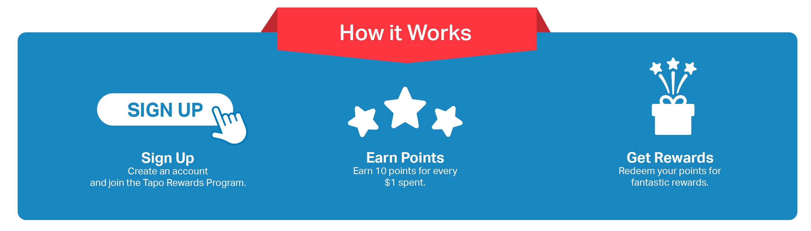 Tapo Rewards Program is our free loyalty program that allow you to earn points based on how much you shop on au.store.tapo.com. The more you spend, the more rewards and benefits you accumulate, which can be redeemed directly with us as a thank-you for your loyalty. Simple and straightforward!