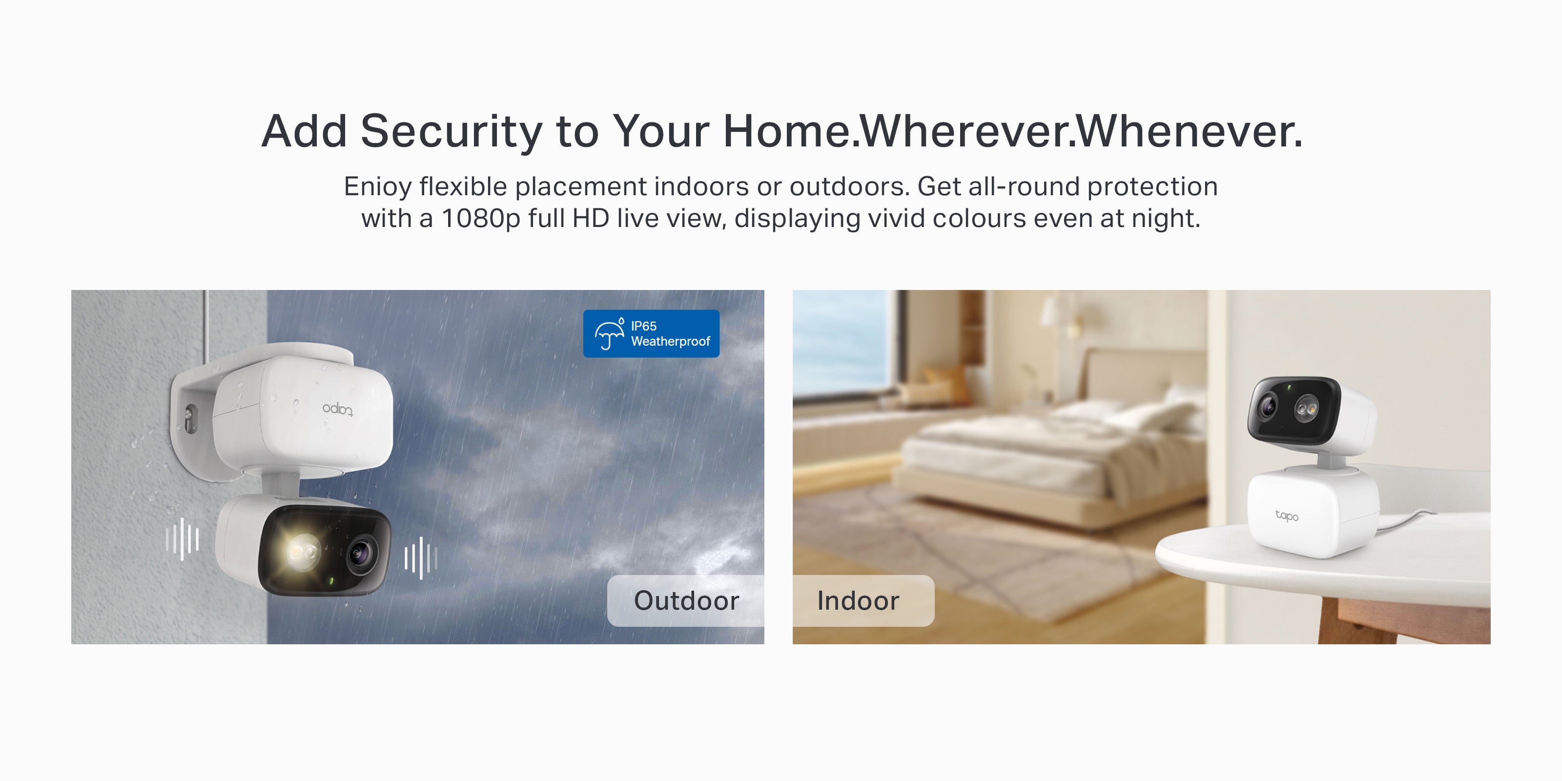 - Add Security to Your Home. Wherever. Whenever: Enjoy flexible placement indoors or outdoors. Get all-round protection with a 1080p Full HD live view, displaying vivid colours even at night.