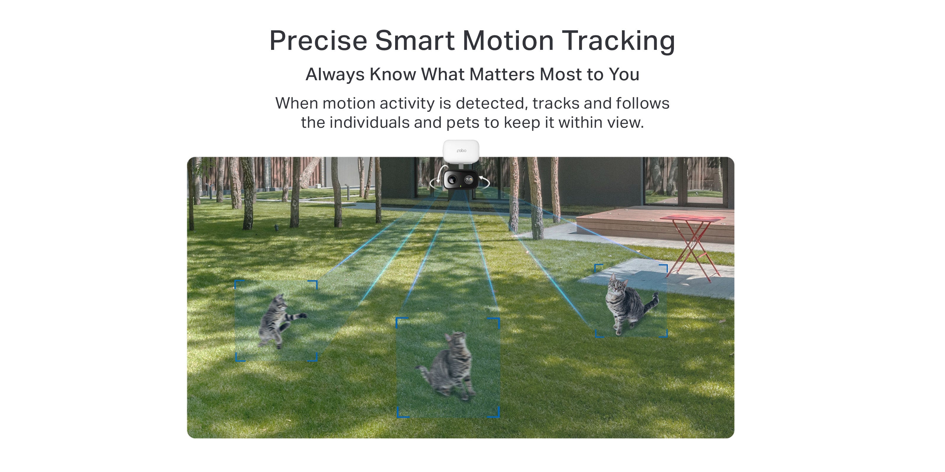 - Motion Detection and Tracking: Whenever a camera detects motion, it will automatically follow the subject.