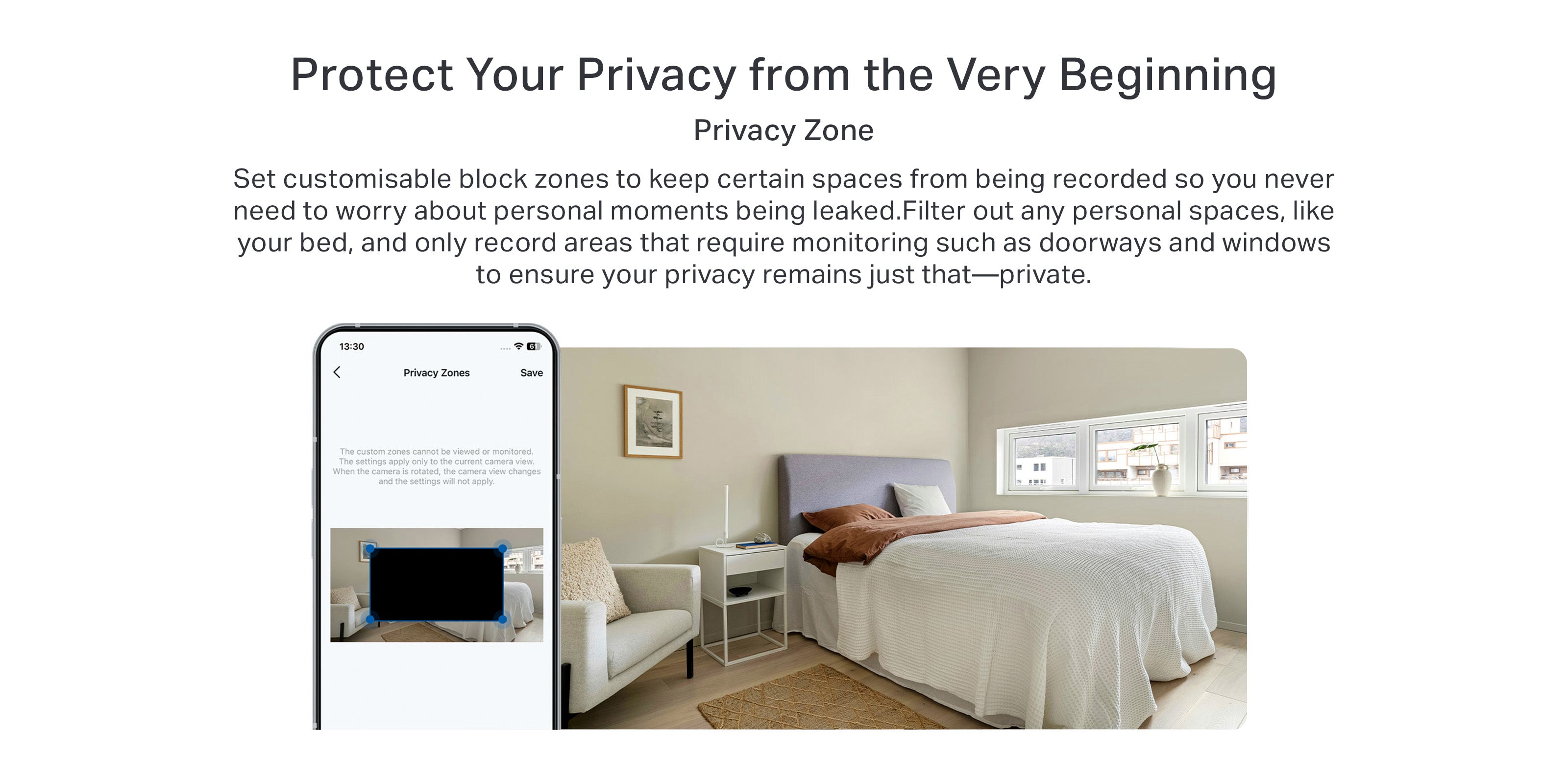 - Vivid Colours, Even at Night: Instead of black-and-white images, Tapo C206 offers full-colour images at night with built-in spotlights, ensuring details in low-light conditions.