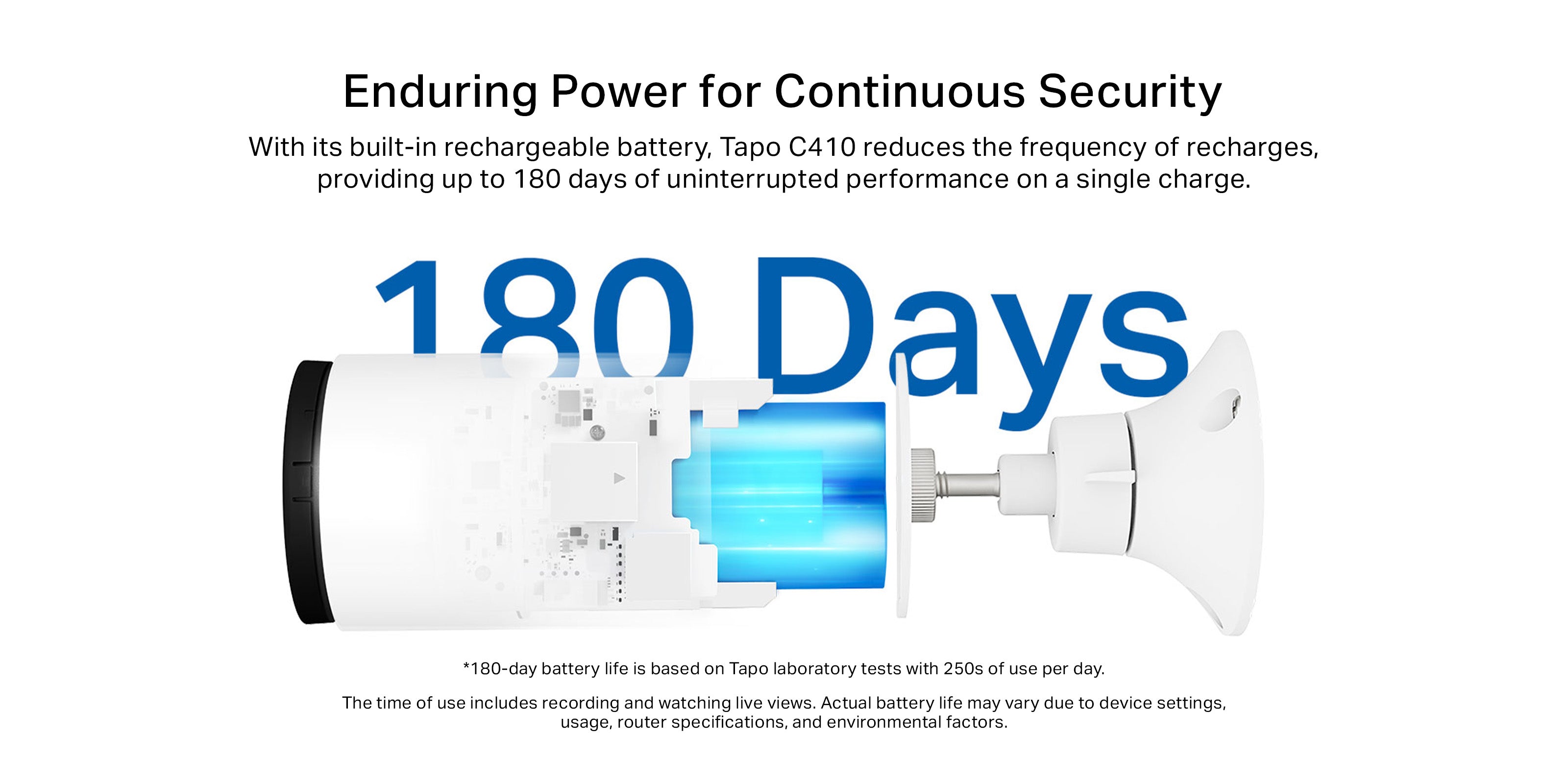 - Extended Battery Life: With up to 180 days of security on a single charge, the Tapo C410 minimises maintenance.
