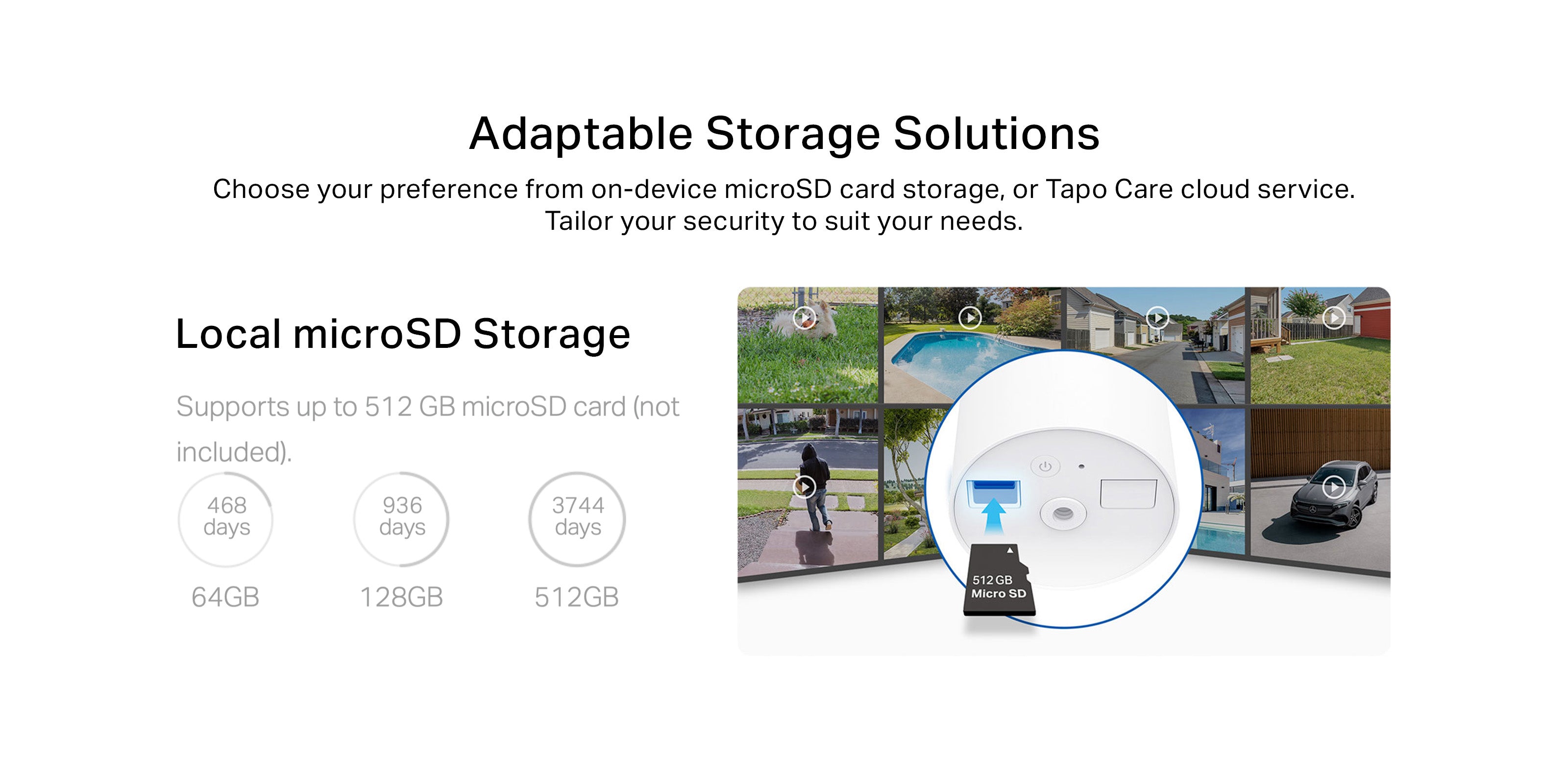 - Flexible Storage Options: Choose from local microSD storage up to 512GB or the secure Tapo Care cloud service for additional peace of mind.