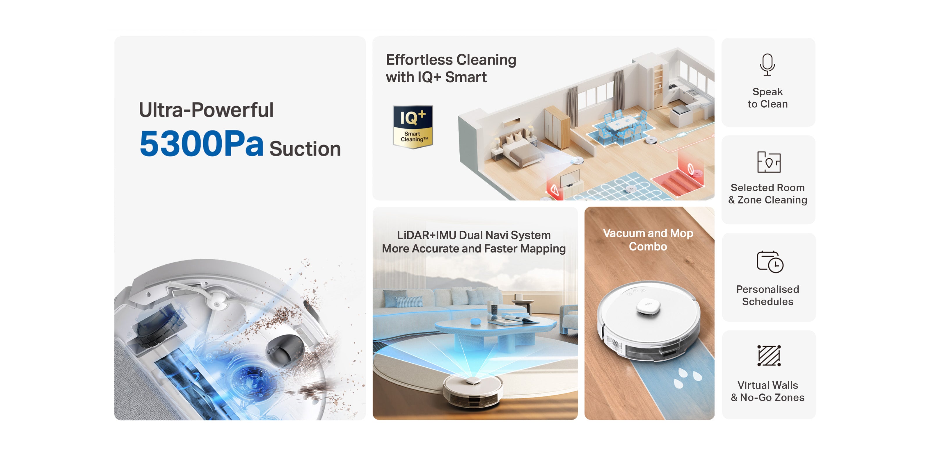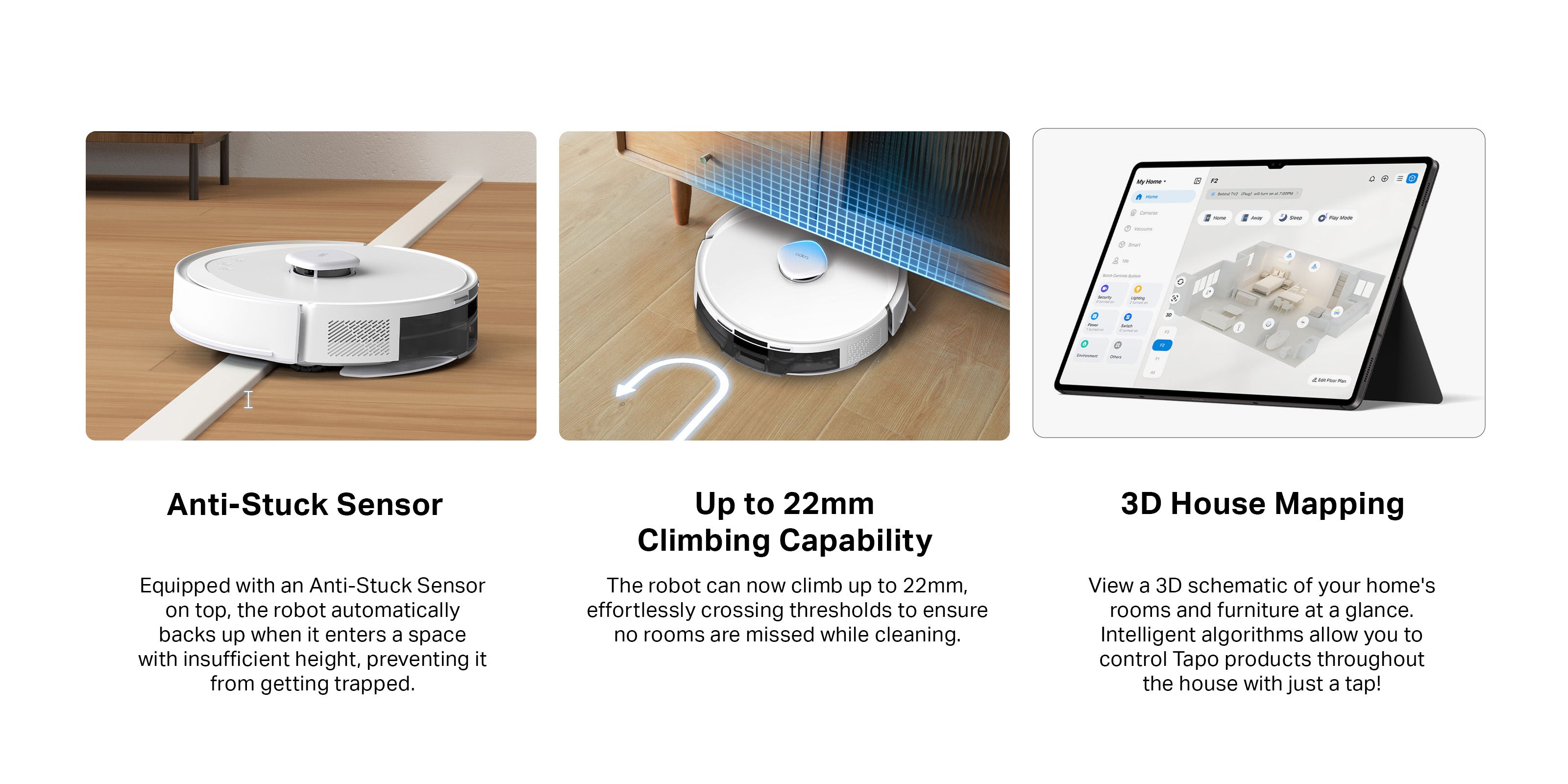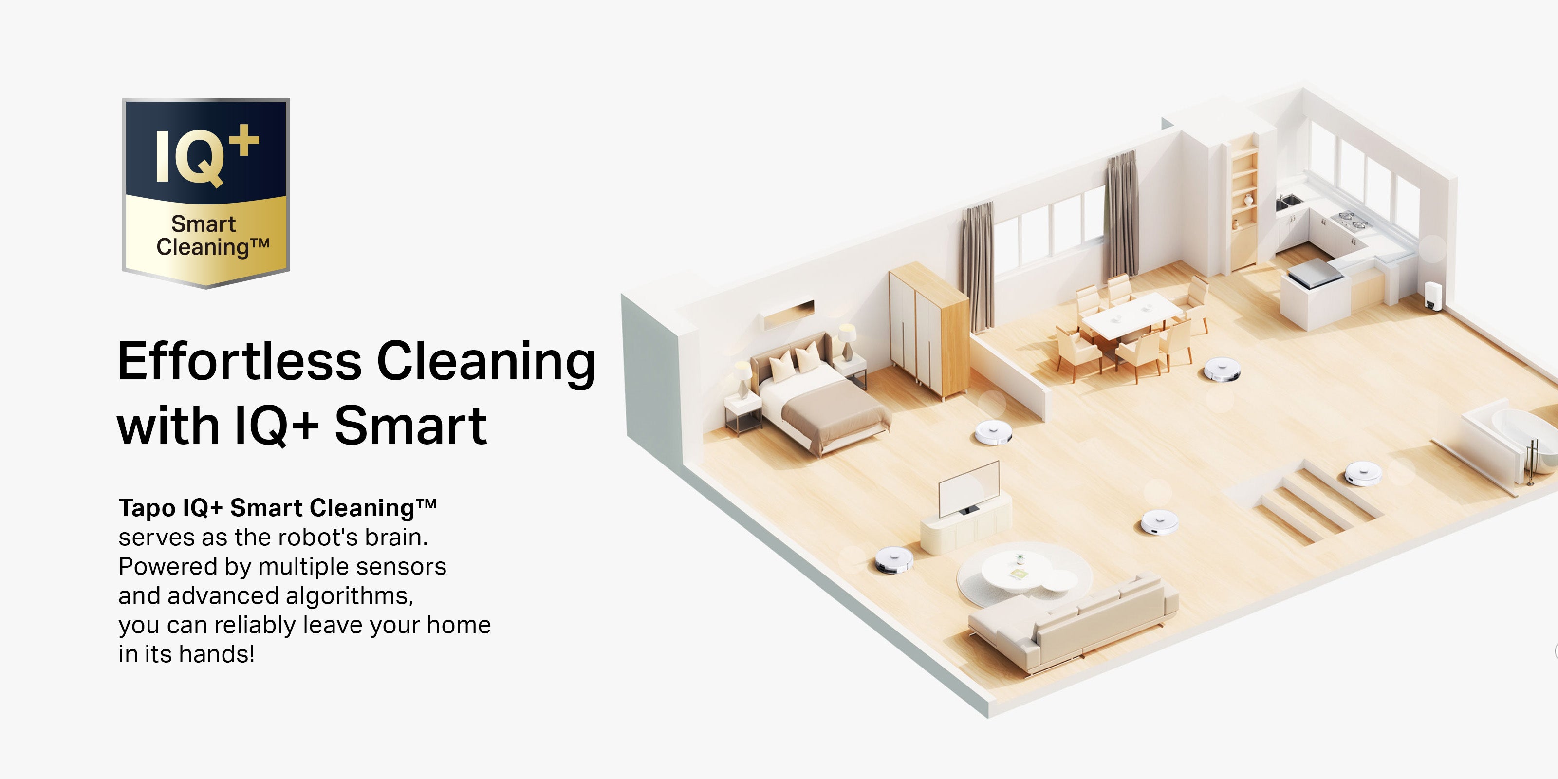 - Tapo IQ+ Smart Cleaning™ - Serves as the robot's brain. Powered by multiple sensors and advanced algorithms, you can reliably leave your home in its hands.