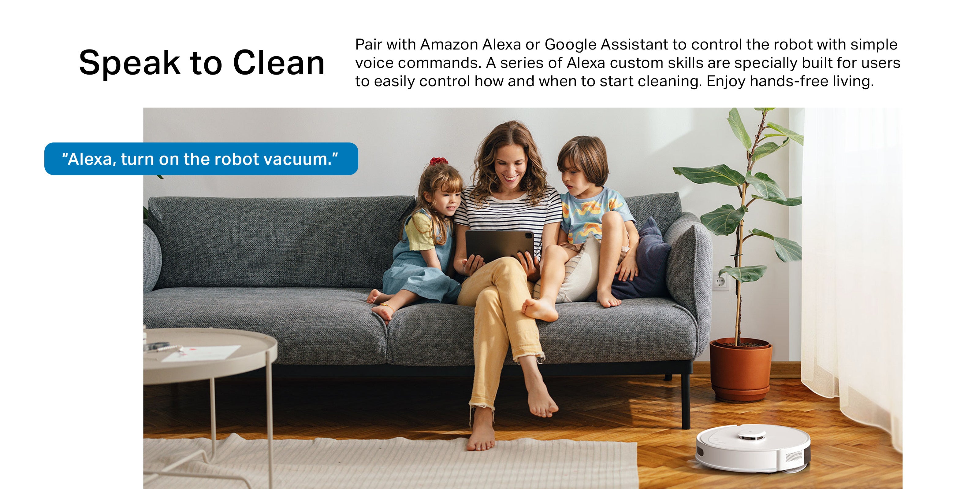 - Voice & Remote Control - Pair with Amazon Alexa or Google Assistant to control the robot with simple voice commands. Enjoy hands-fee living.