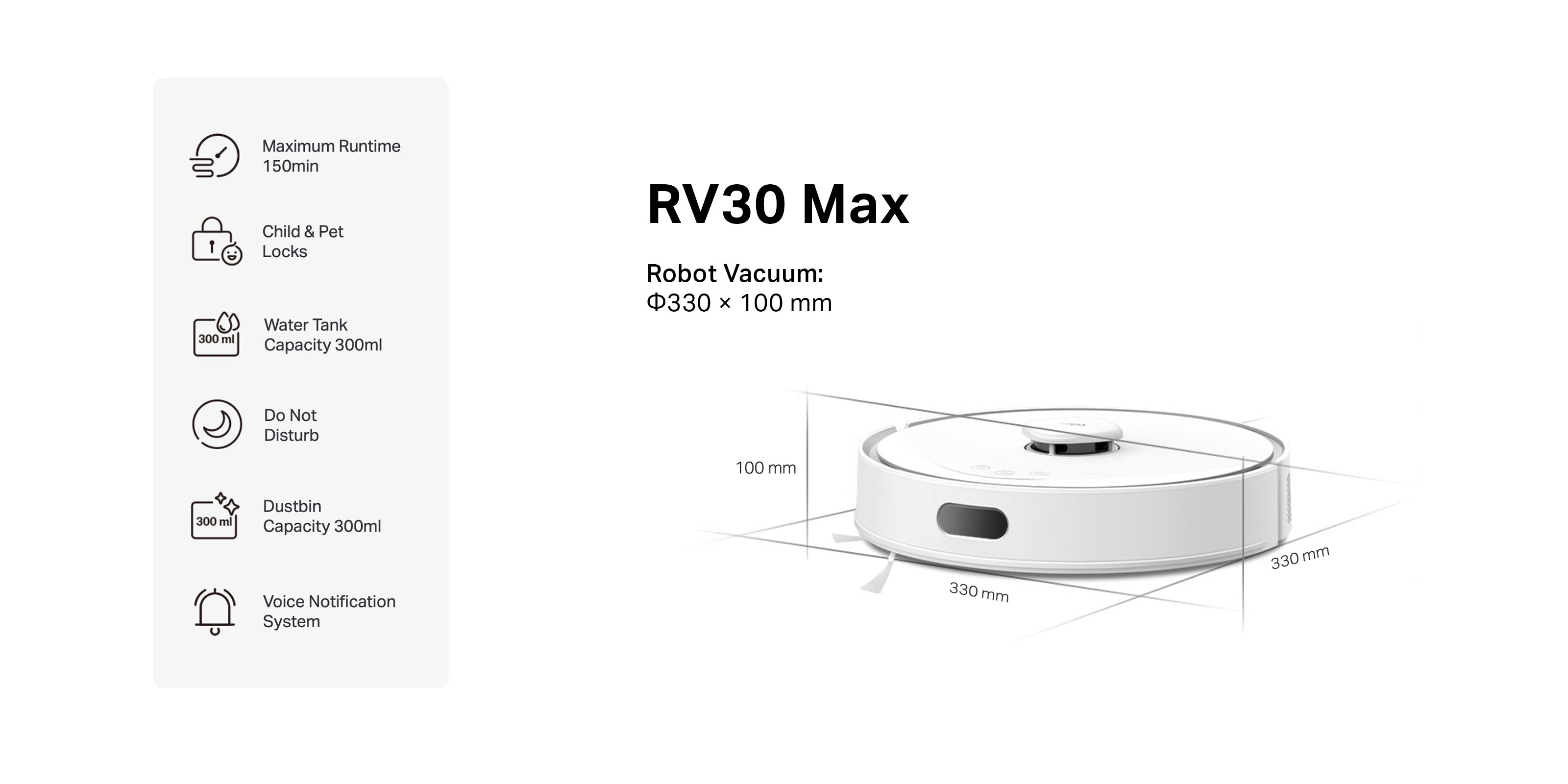 Tapo RV30 Max White | 5300Pa Hyper Suction Robot Vacuum & Mop