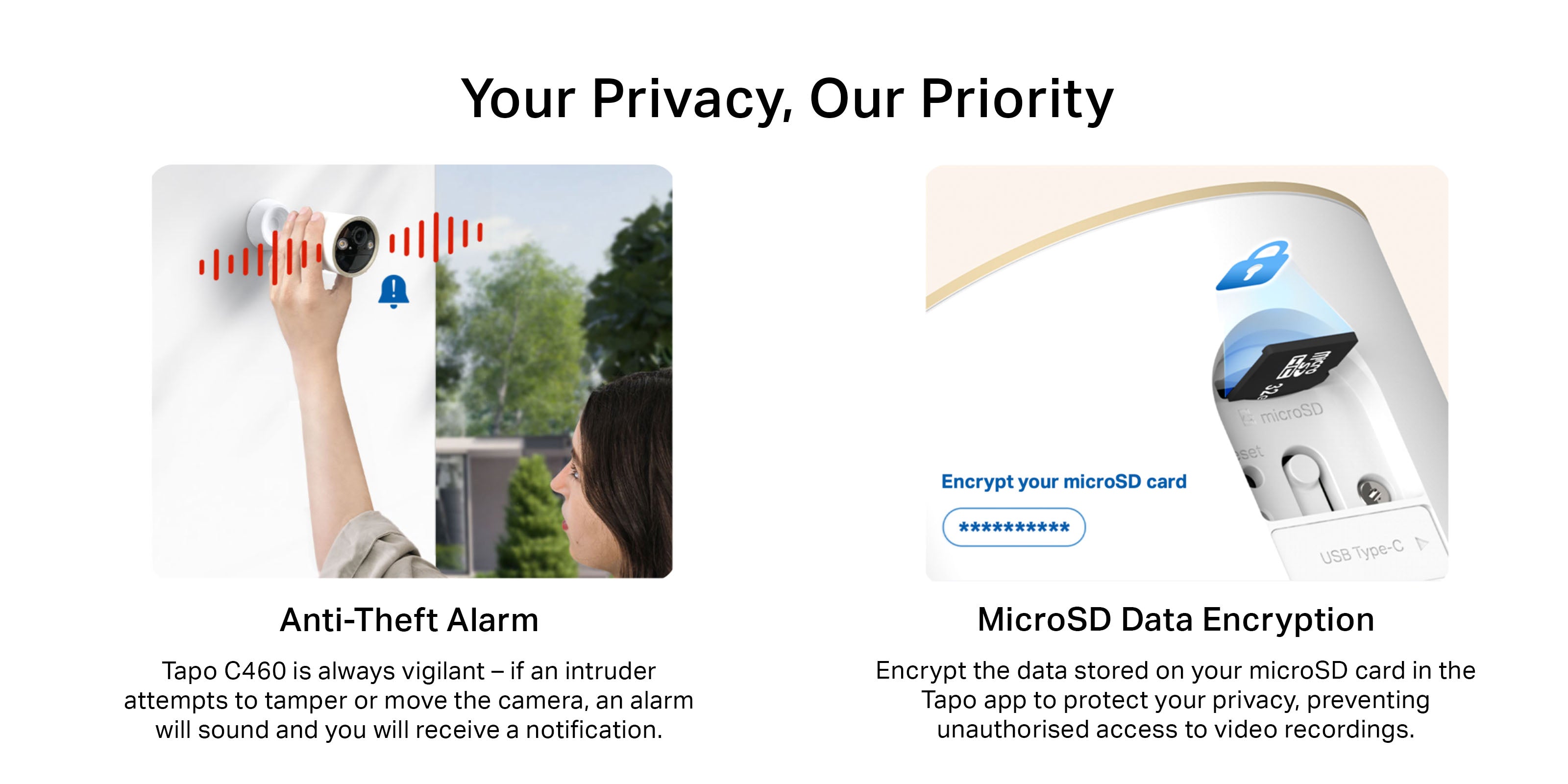 - Flexible Storage Options: Choose from local microSD storage up to 512GB2 or the secure Tapo Care3 cloud service for additional peace of mind.