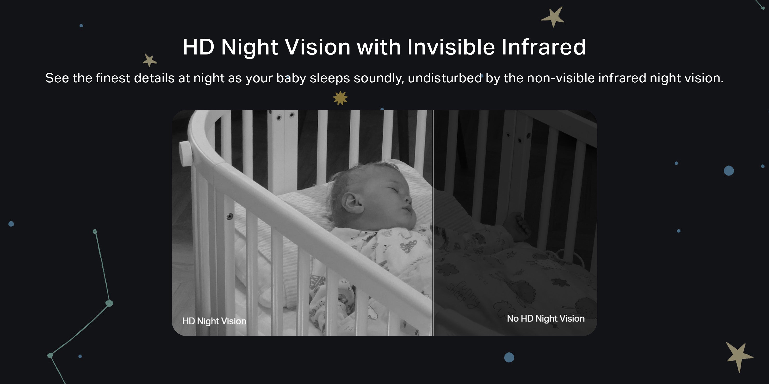 HD Night Vision with Non-visible Infrared: See the finest details at night as your baby sleeps soundly.