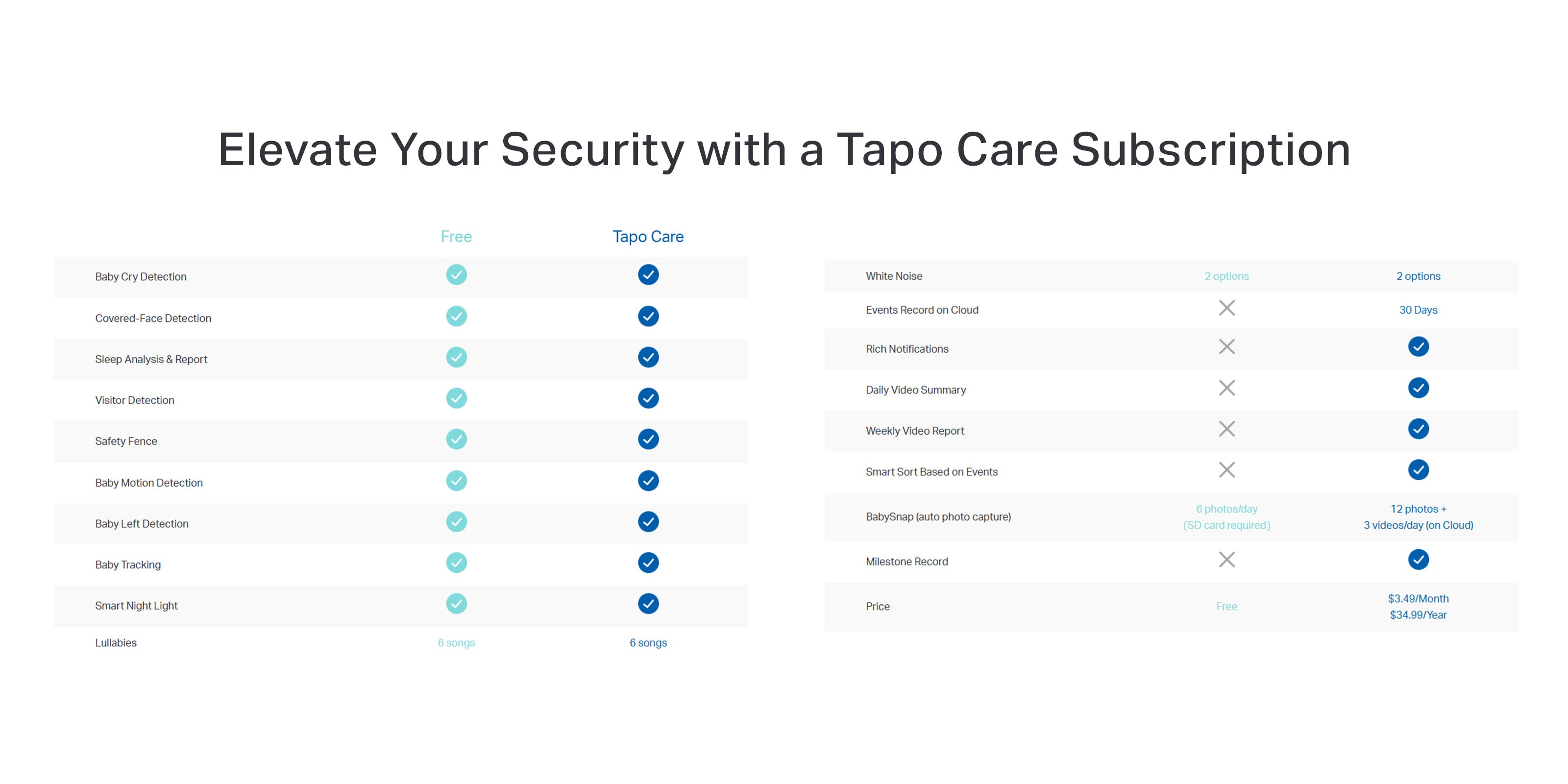 *Tapo Care prices are subject to change. Please refer to the actual situation.