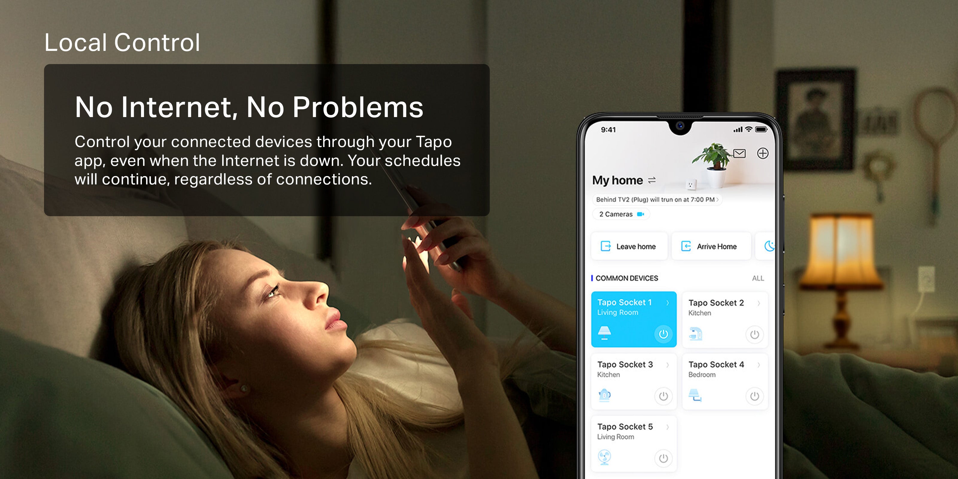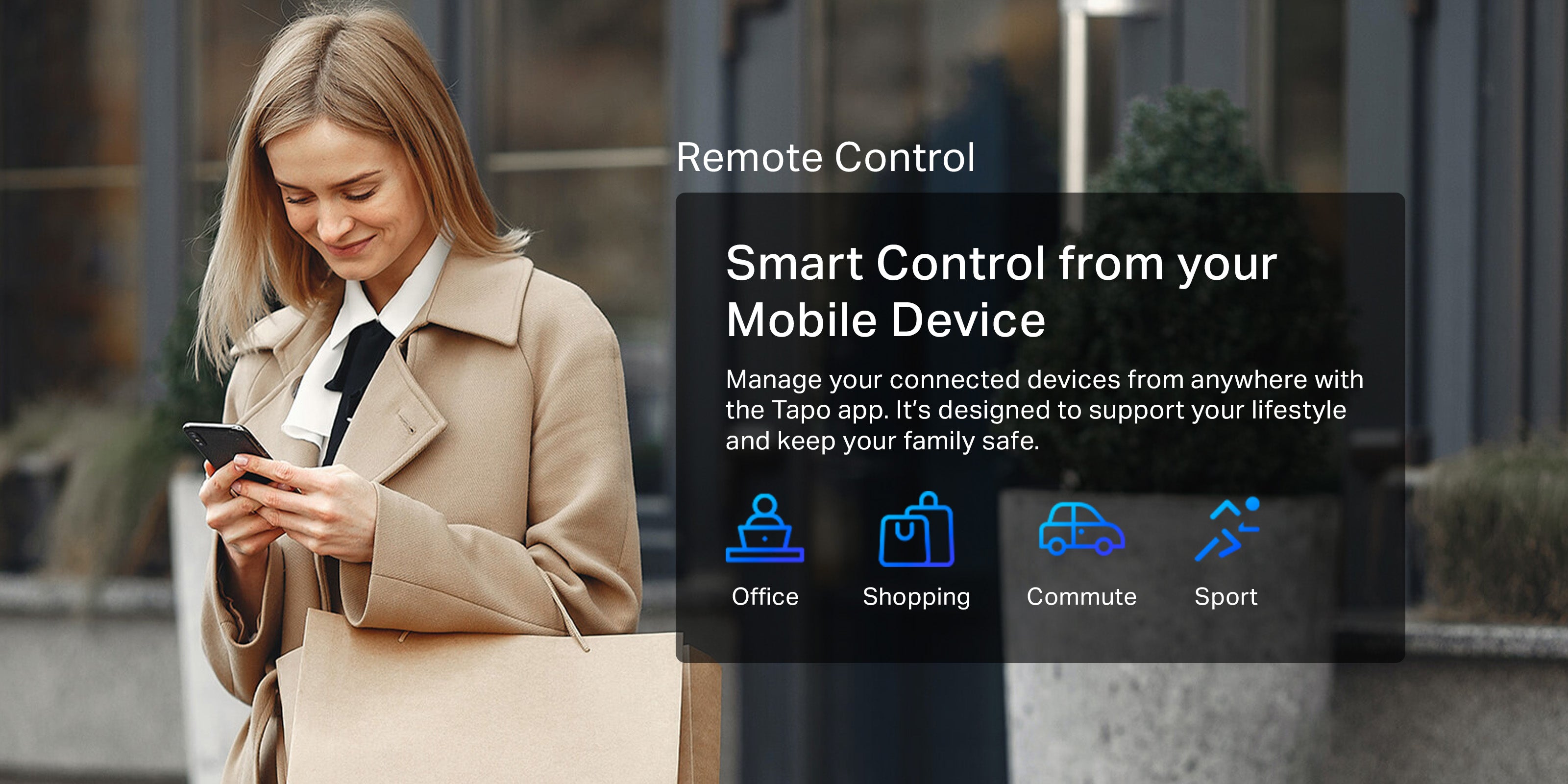 - Remote Control – Instantly turn connected devices on/off wherever you are through the Tapo app