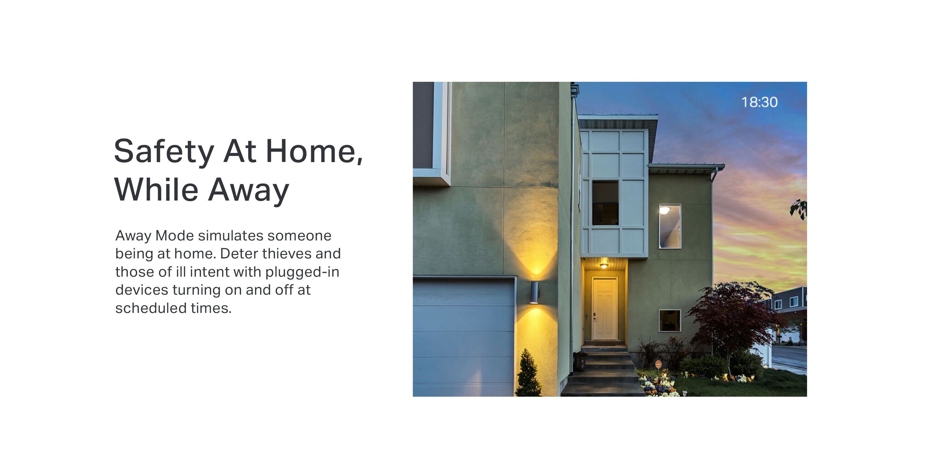 - Away Mode – Automatically turns devices on and off at different times to give the appearance that someone is home