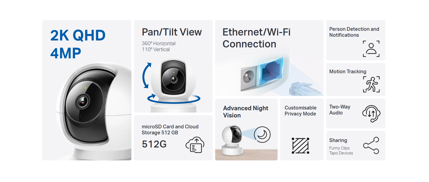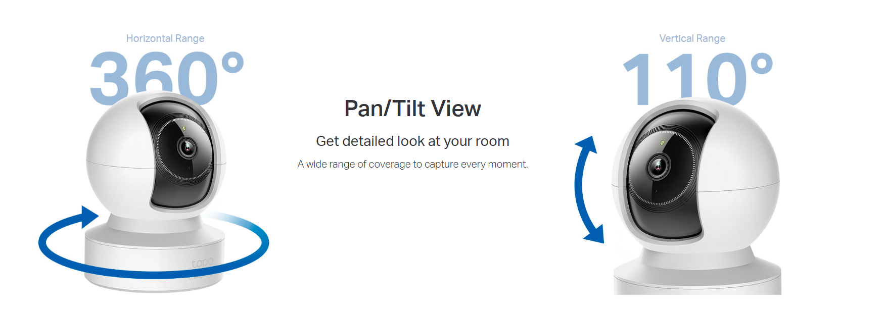- Wide Range of Movement: Enjoy a full 360º horizontal and 110º vertical range for pan and tilt, allowing you to cover more area.