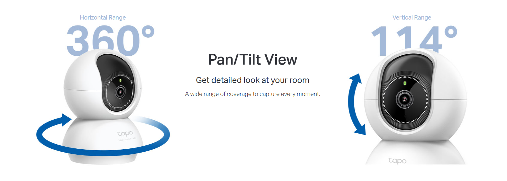 - Wide Range of Movement: Enjoy a full 360º horizontal and 114º vertical range for pan and tilt, allowing you to cover more area.