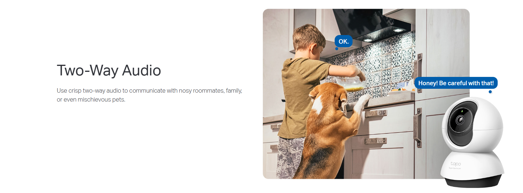 - Two-Way Audio: Enables communication through a built-in microphone and speaker
