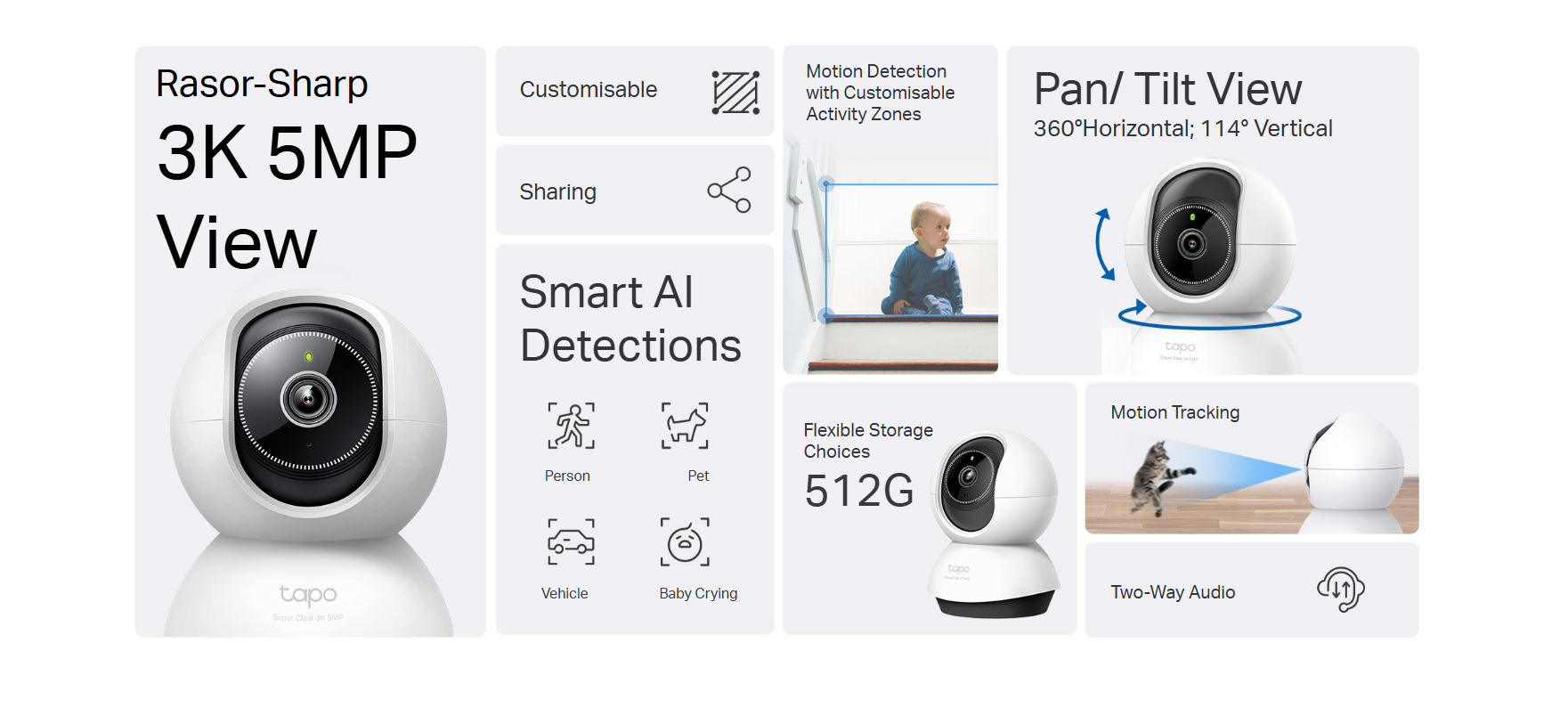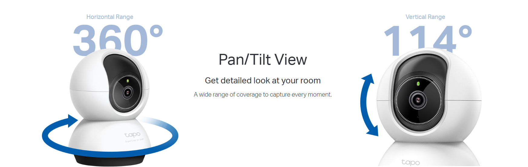 - Wide Range of Movement: Enjoy a full 360º horizontal and 114º vertical range for pan and tilt, allowing you to cover more area.