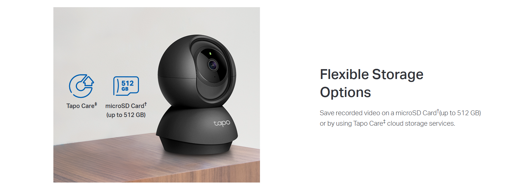 - Secure Local or Cloud Storage: Save footage continuously on up to a 512 GB microSD card† or subscribe to Tapo Care for cloud storage.‡