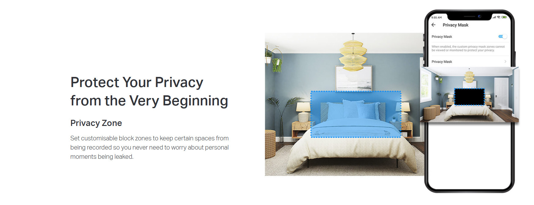 - Privacy Zone: Set customisable block zones to keep certain spaces from being recorded so you never need to worry about personal moments being leaked.