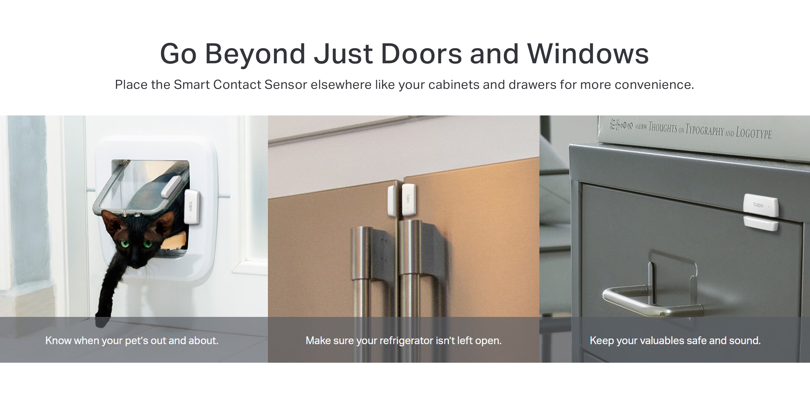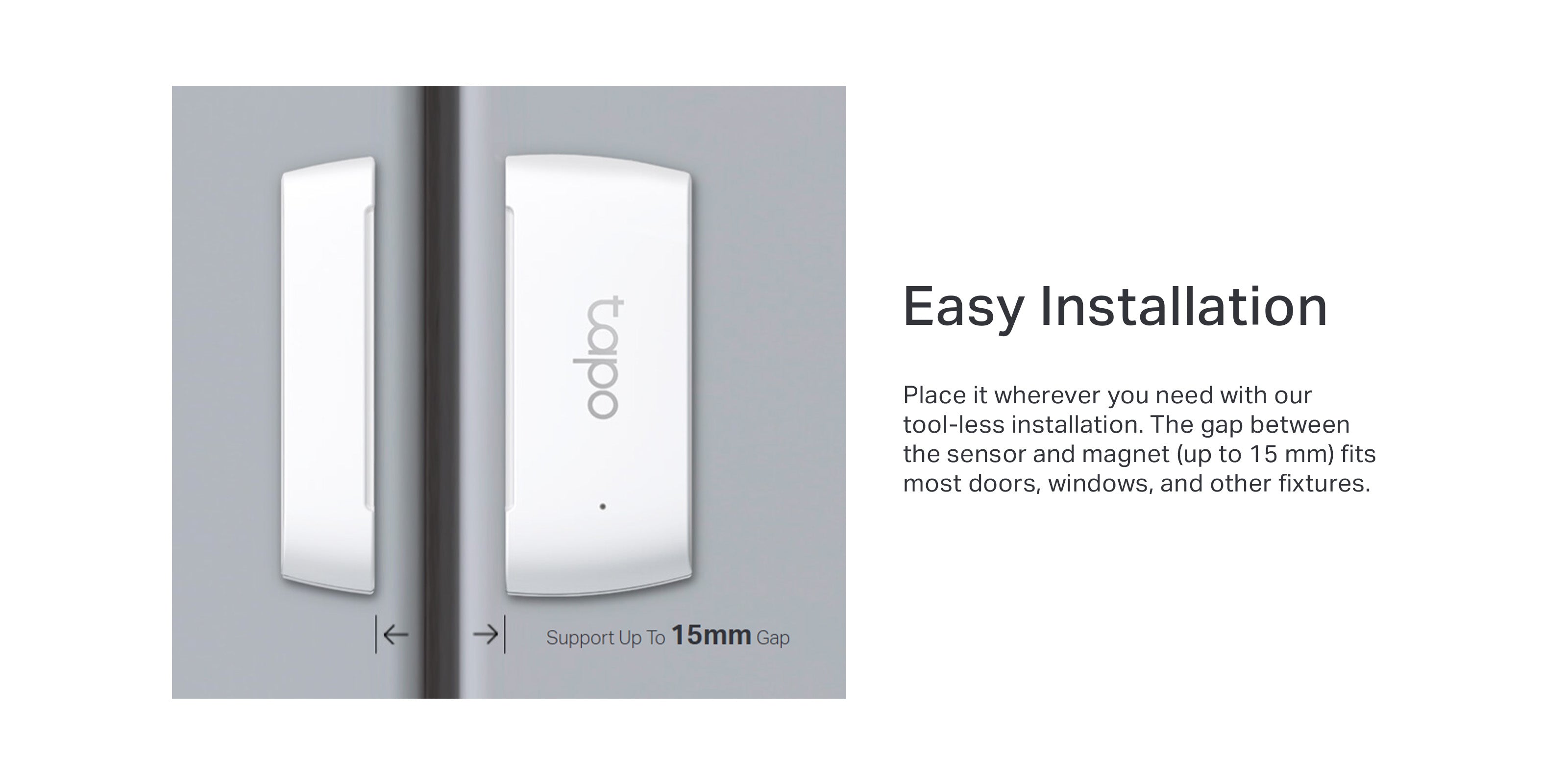 Real-time door and window monitor with instant notifications, home automation integration, easy adhesive installation, and 2-year battery life for smart home security.