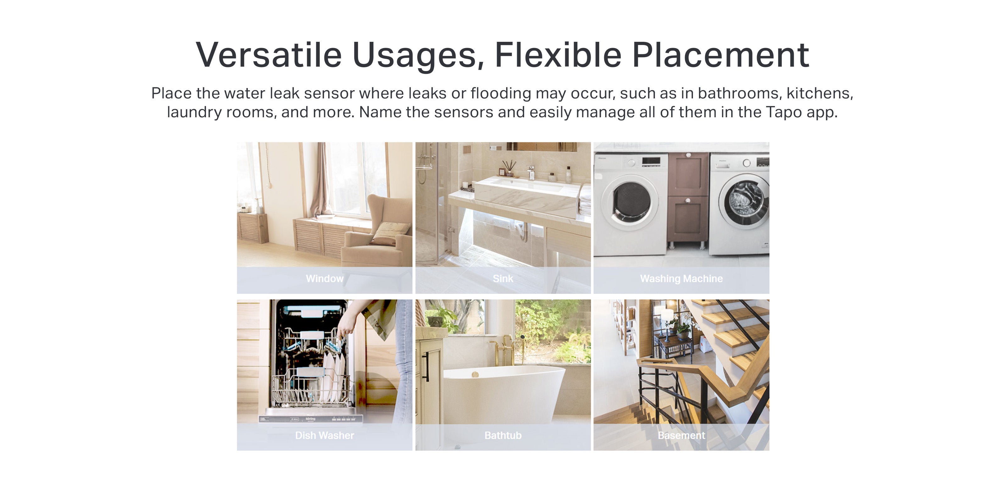 - Flexible Placement - Wireless, designed to place in anywhere leaks or flooding may occur, like under the sinks, near washing machine, bathtub and more.