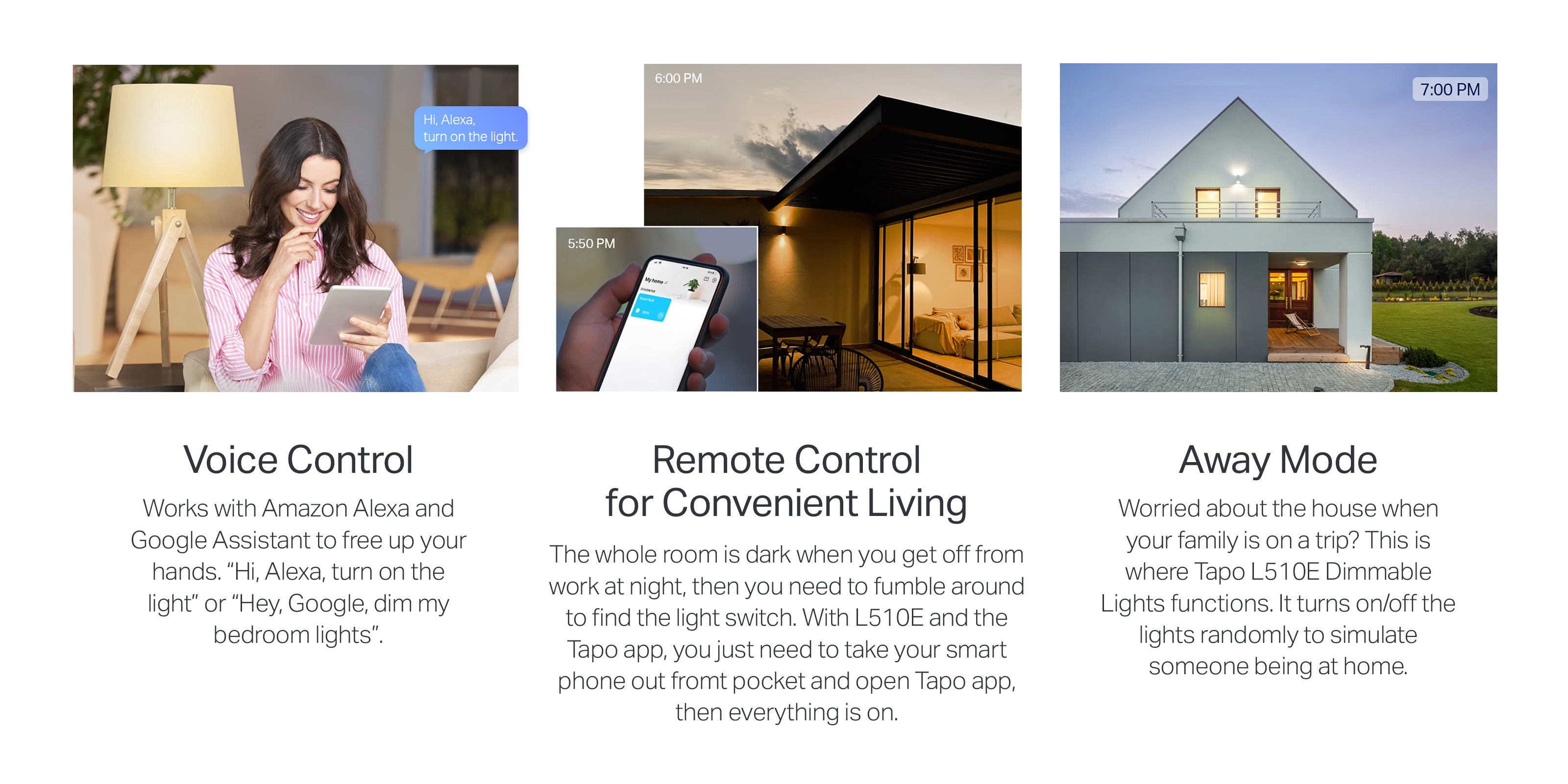 - Voice Control – Manage the lights with your voice commands as Tapo works with Amazon Alexa and Google Assistant