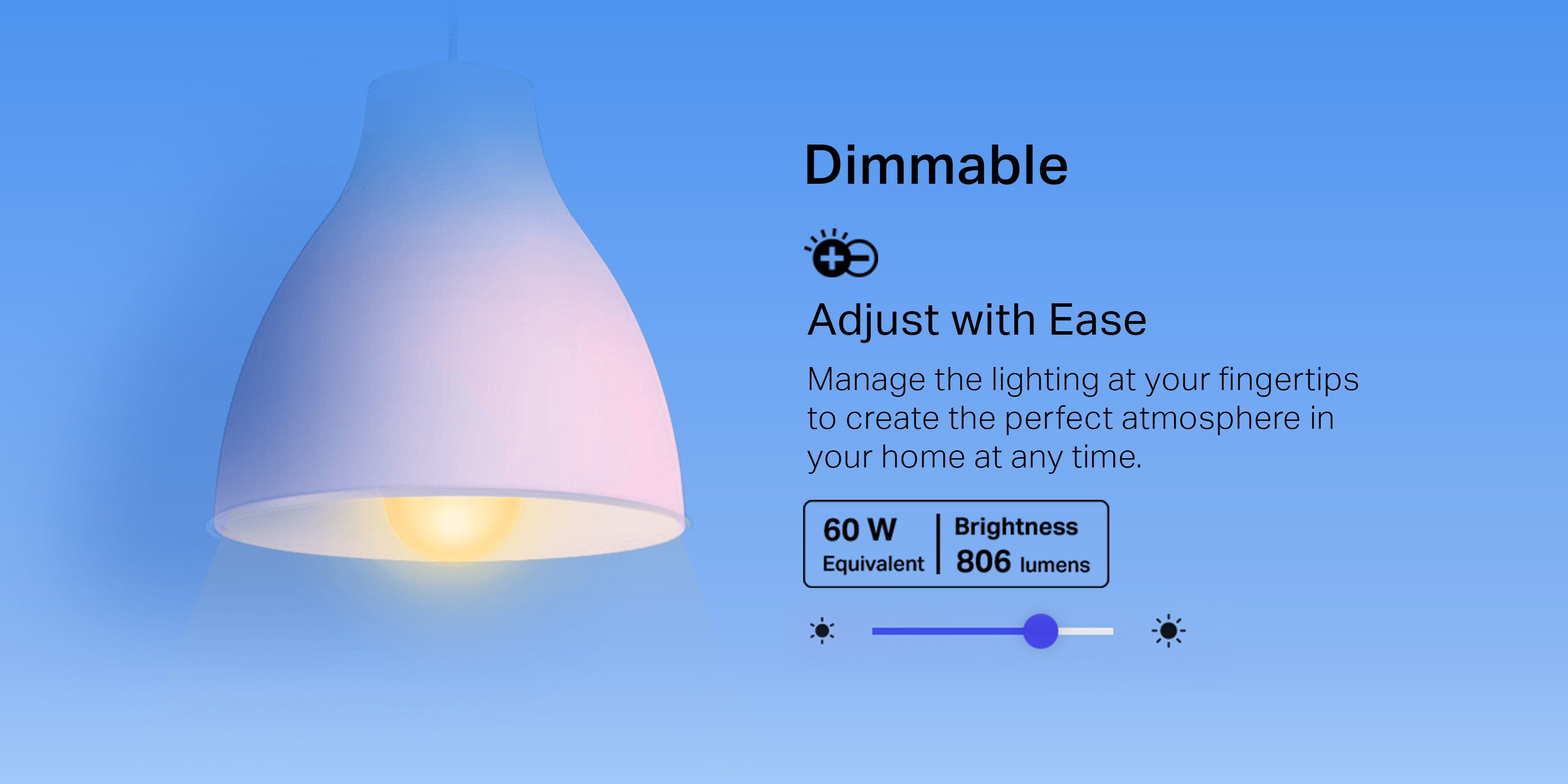 - 60-watt equivalent - LED bulb produces up to 806 lumens of white brightness and has a dimming range from 1% to 100%.