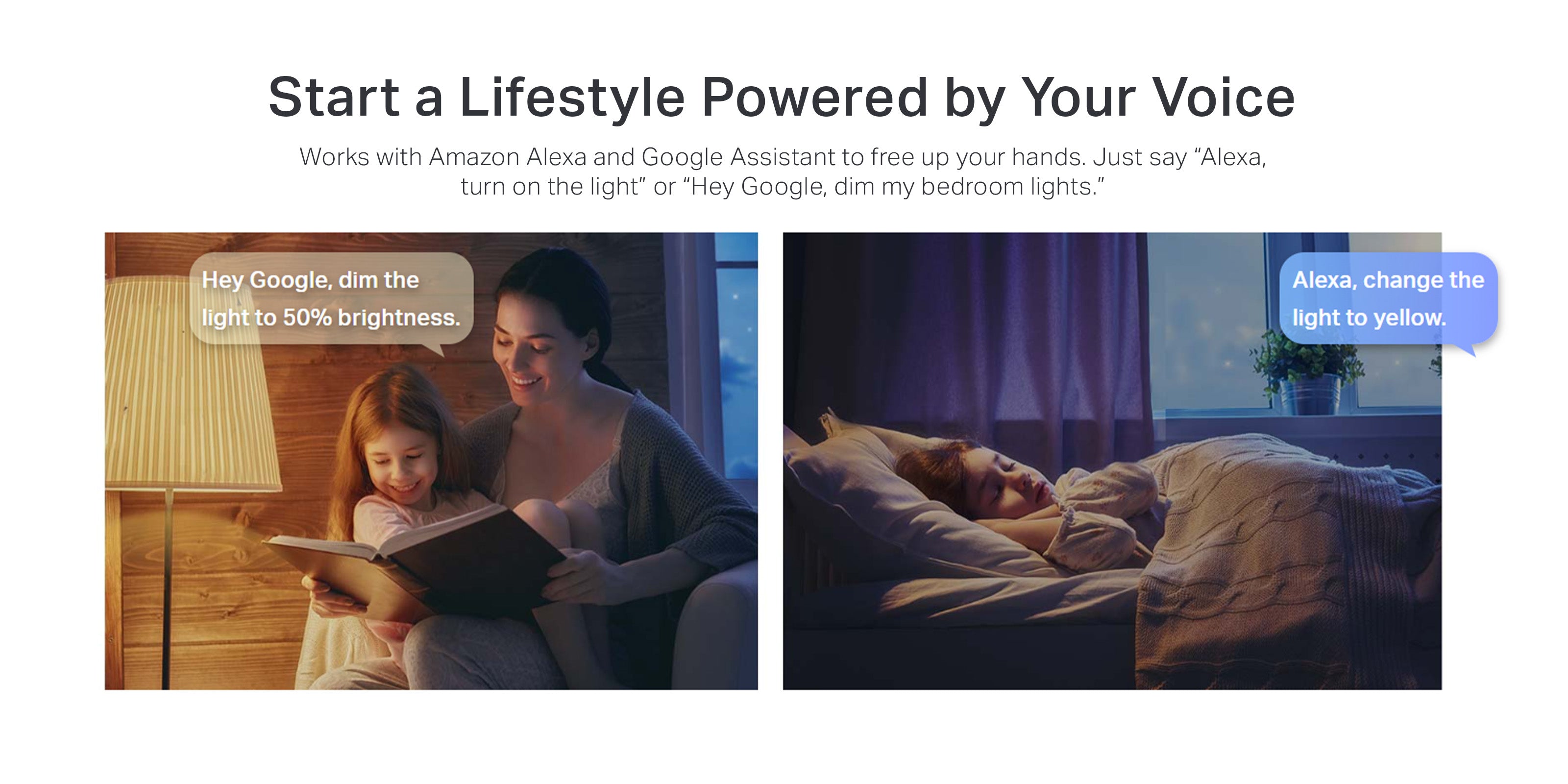 - Voice Control - Manage the lights with your voice commands as Tapo works with Amazon Alexa and Google Assistant.