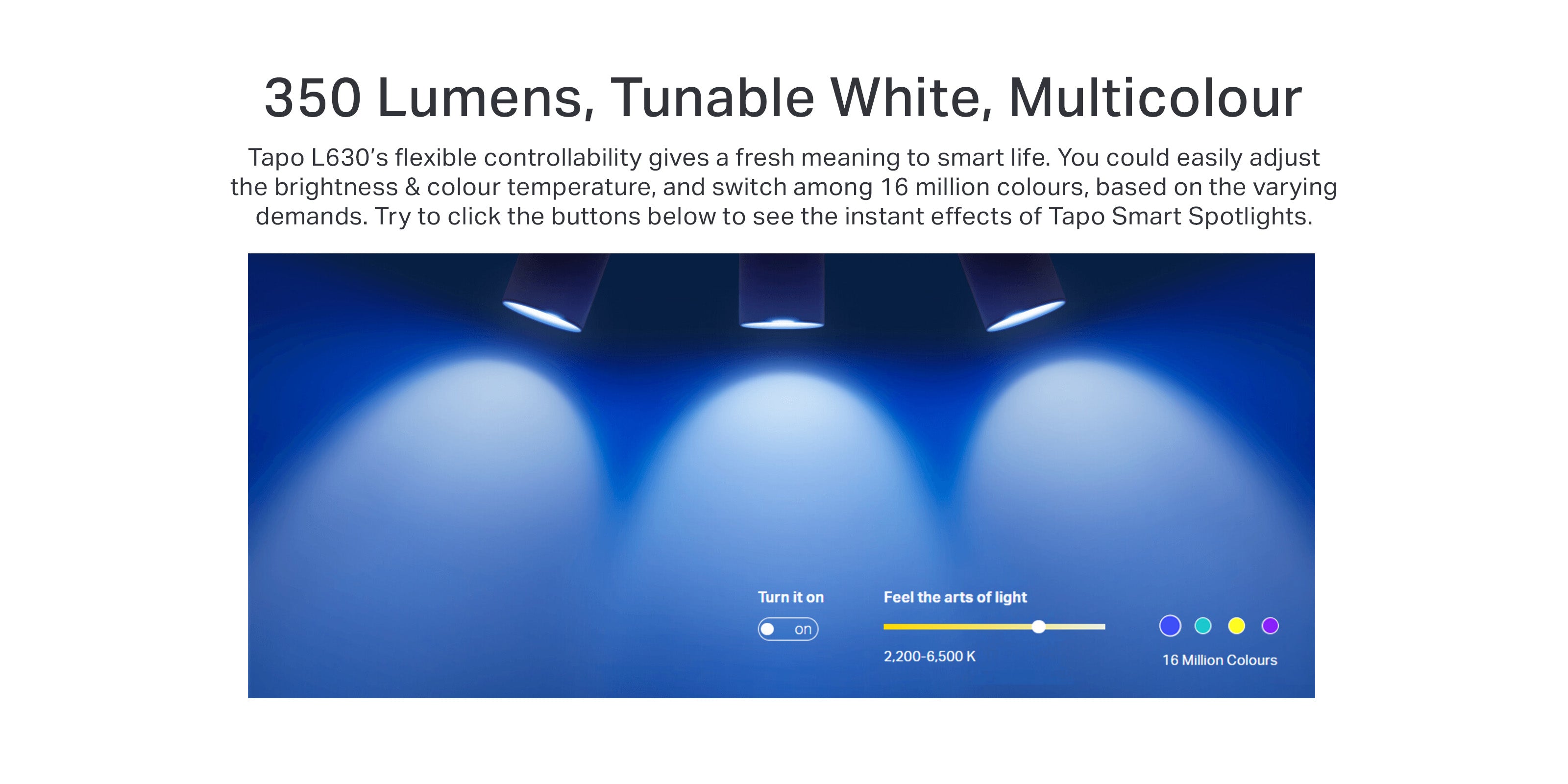 - Remote Control - Instantly turn the spotlight on/off wherever you are via the Tapo App.