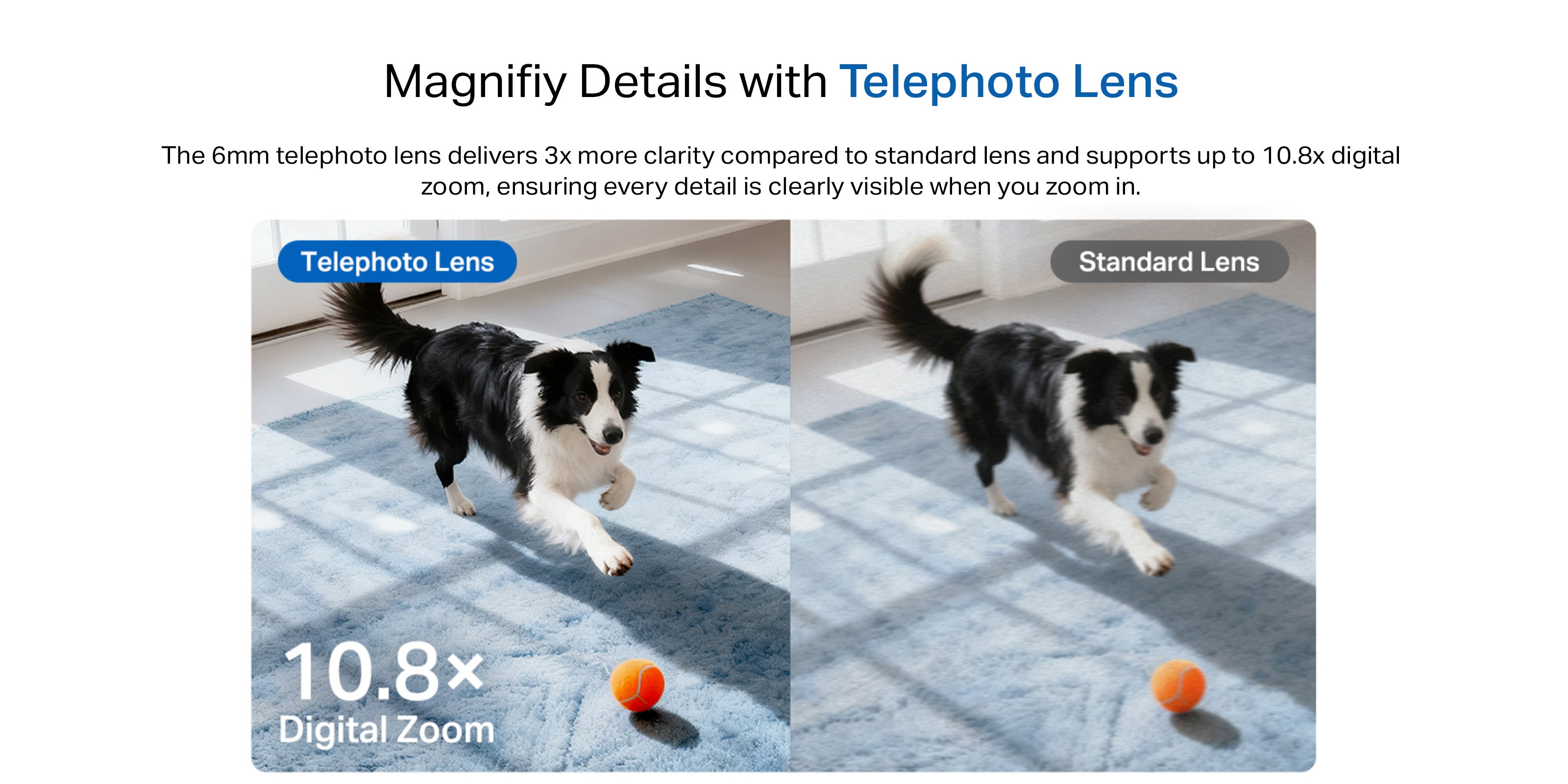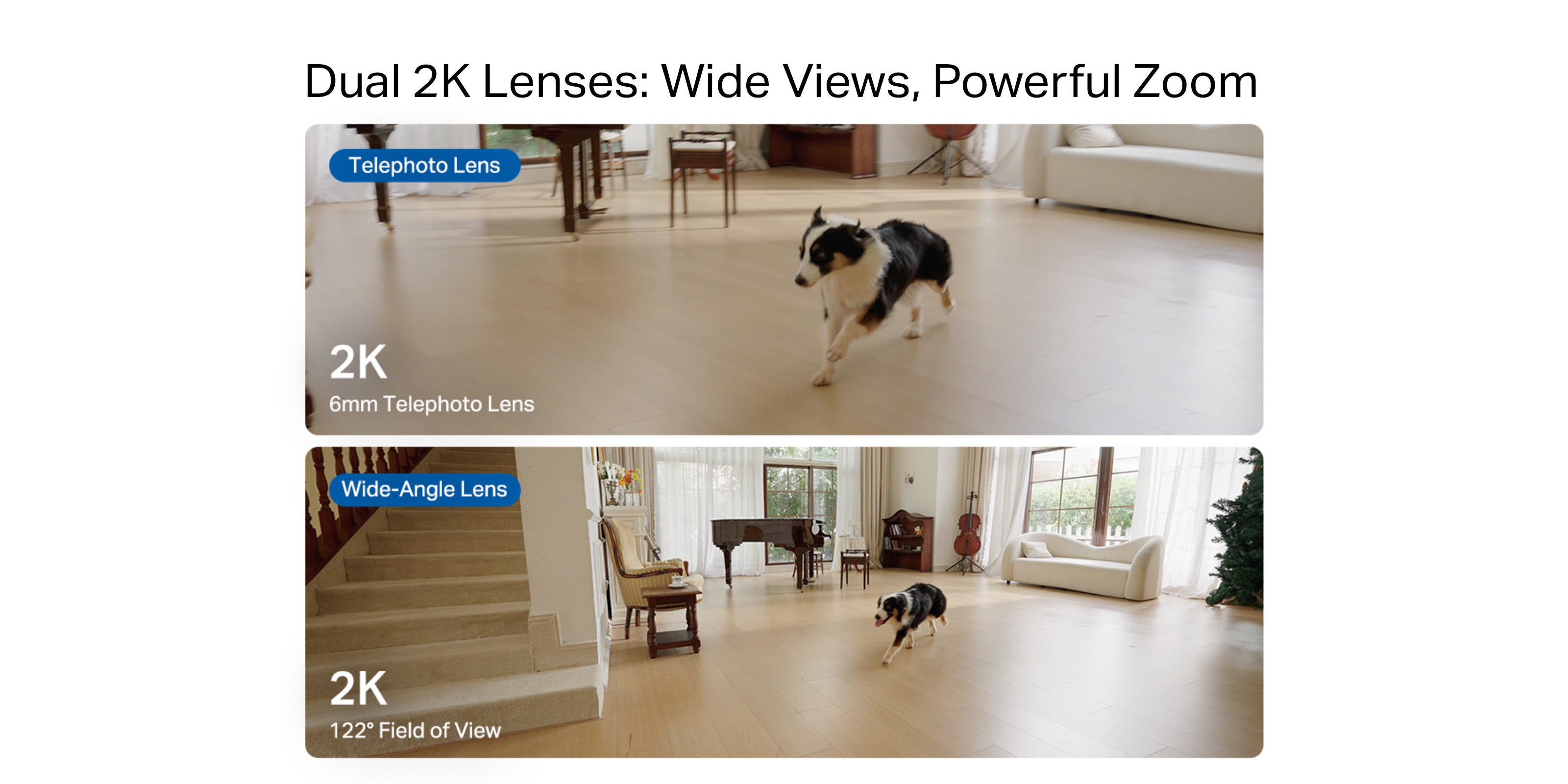 - Wide-angle & Telephoto Lens - With 122° FOV wide-angle lens and 6mm telephoto lens, it ensures all-around awareness and down-to-the-detail protection of your home.