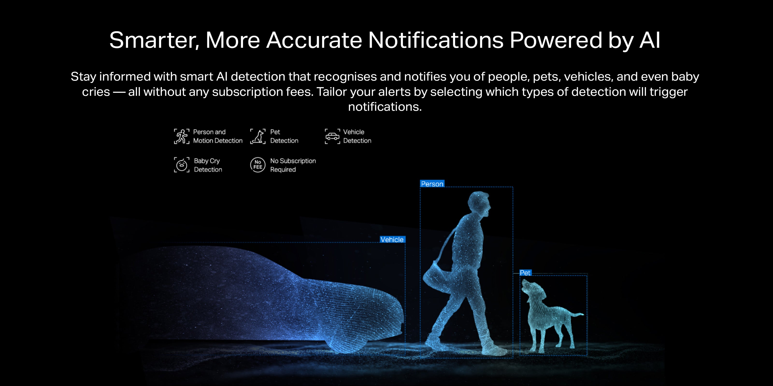 - Free Smart Dual AI Detection & Notification - Get instant push notifications when motion, person, pets, vehicles or even baby cry are detected, there is no additional fee to use it.
