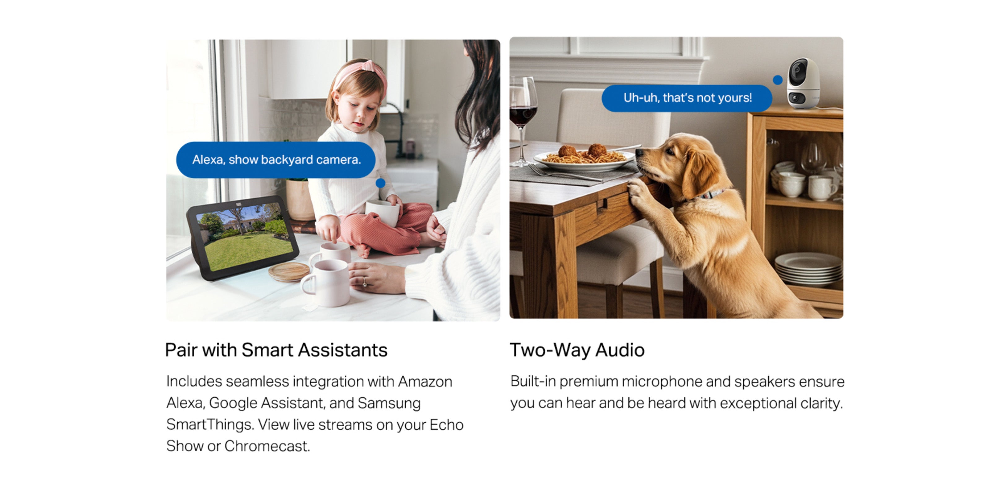 - Works with Alexa, Google Home & Samsung SmartThings - Fully compatible with Amazon Alexa and Google Assistant, use your simple voice command to view Tapo indoor/outdoor home security wi-fi camera live stream.