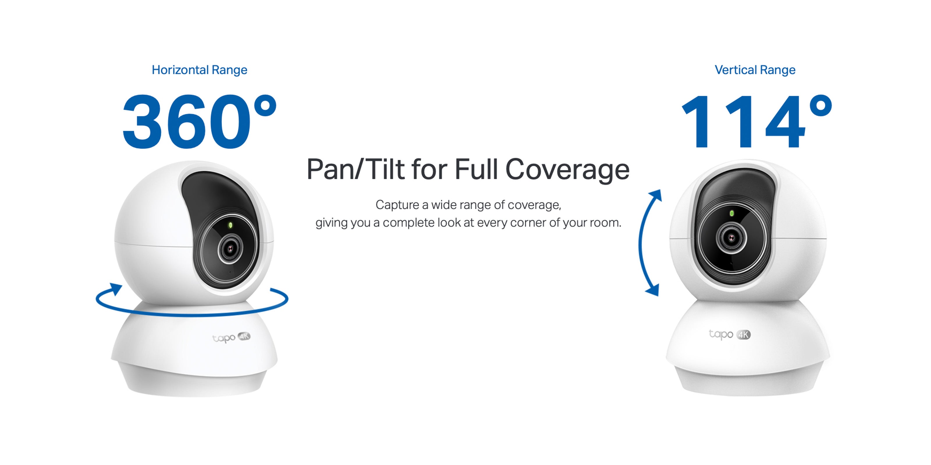 - Wide Range of Visual Coverage: Enjoy a full 360º horizontal and 114º vertical range for pan and tilt, allowing you to cover more area.