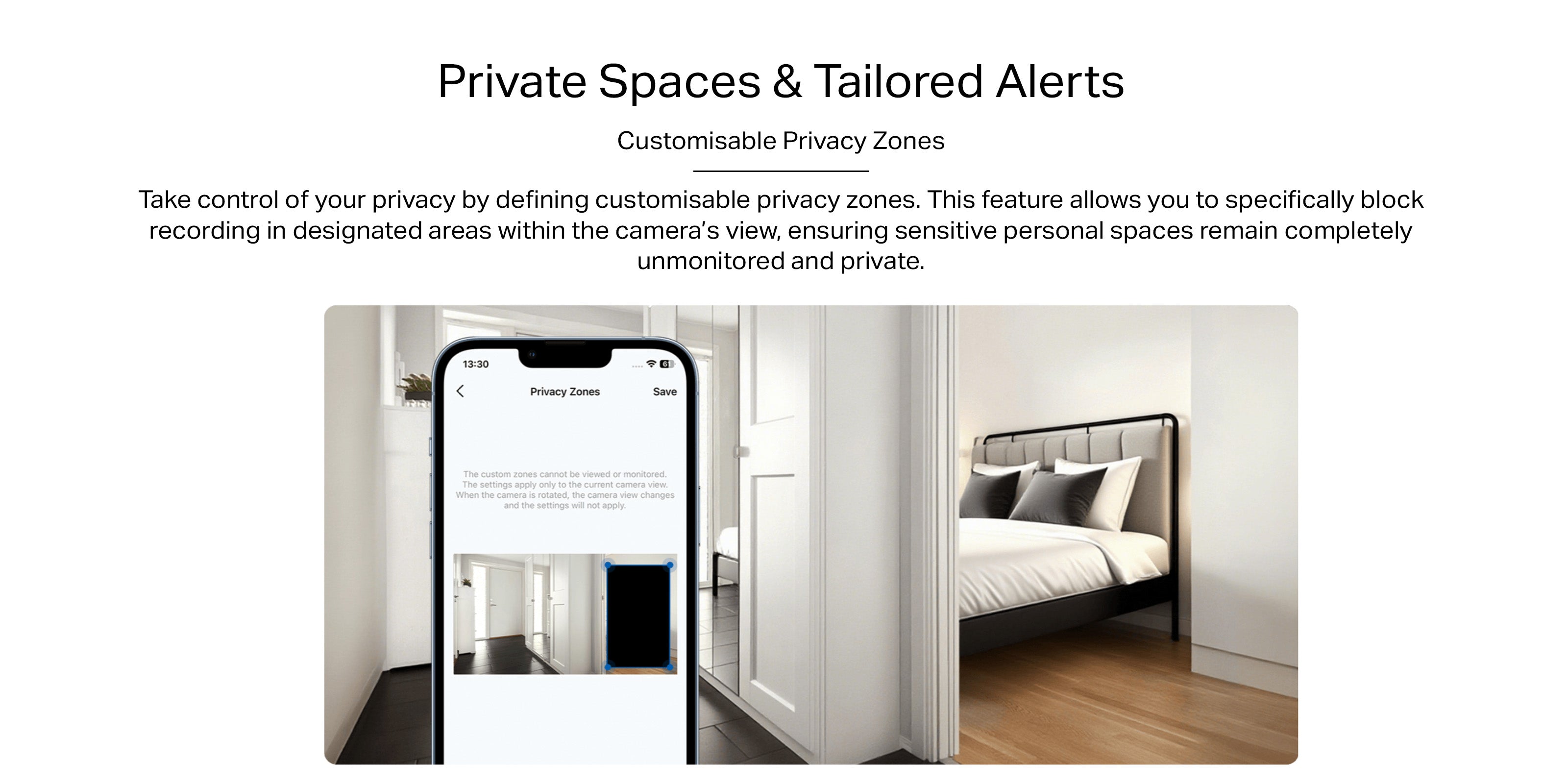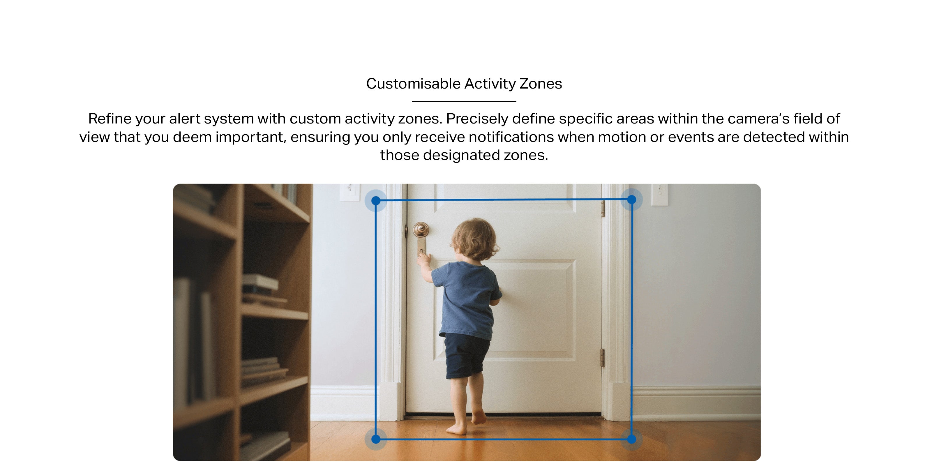 - Customisable Block Zones: Set customizable block zones to keep private areas from being monitored.