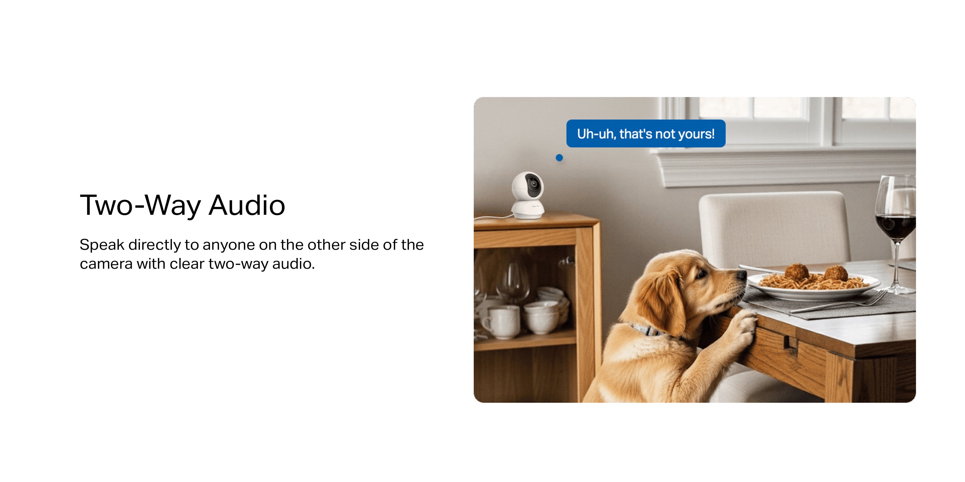 - Two-Way Audio: Enables communication through a built-in microphone and speaker.