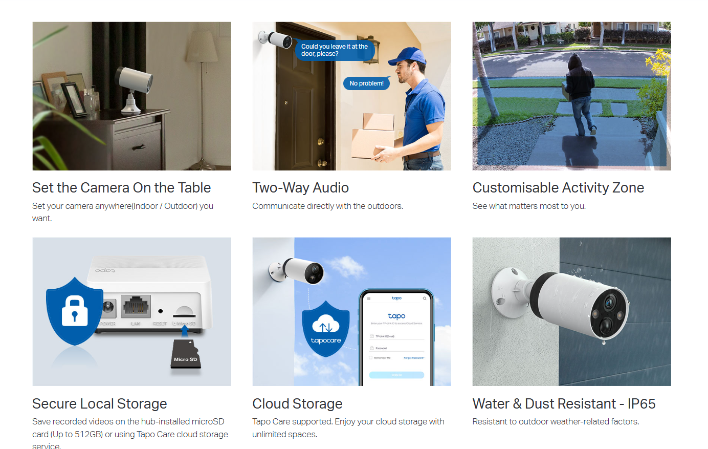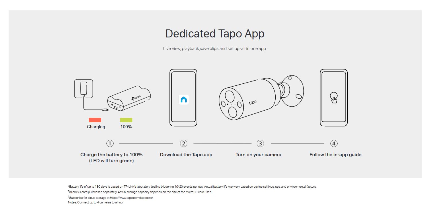 - Flexible Storage Choices-Save recorded videos on the hub-installed microSD card (up to 512 GB) or by using Tapo Care cloud storage services.