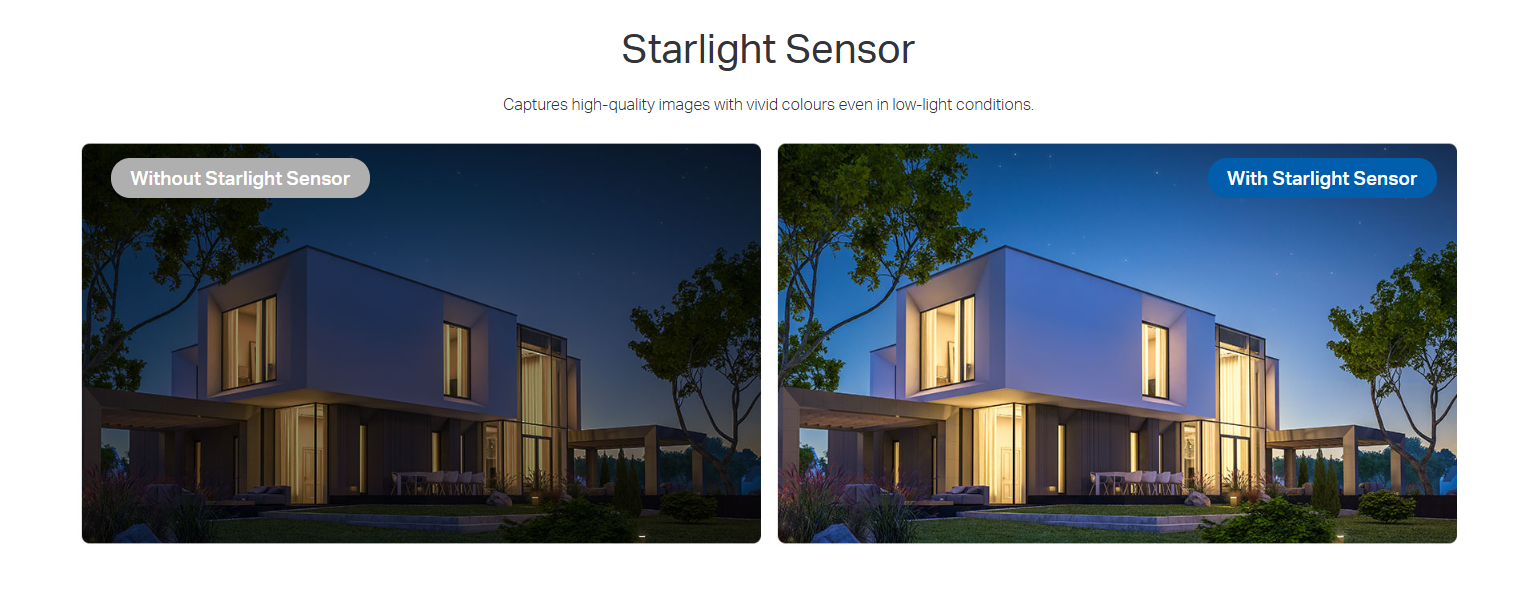 - Full-Colour Night Vision-Reveal high-fidelity details and colour at night with the starlight sensor.