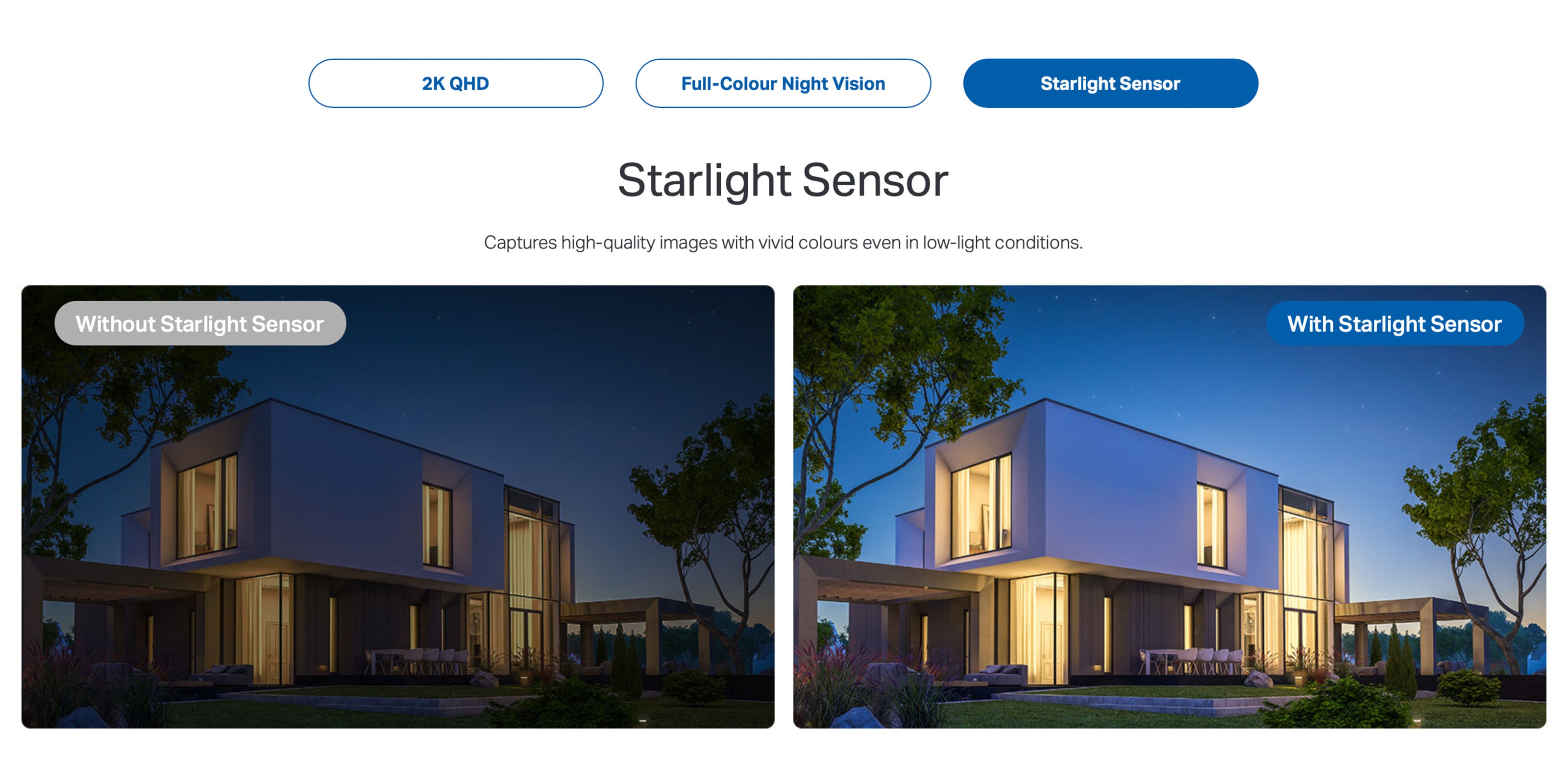 - Full-Colour Night Vision-Reveal high-fidelity details and colour at night with the starlight sensor.