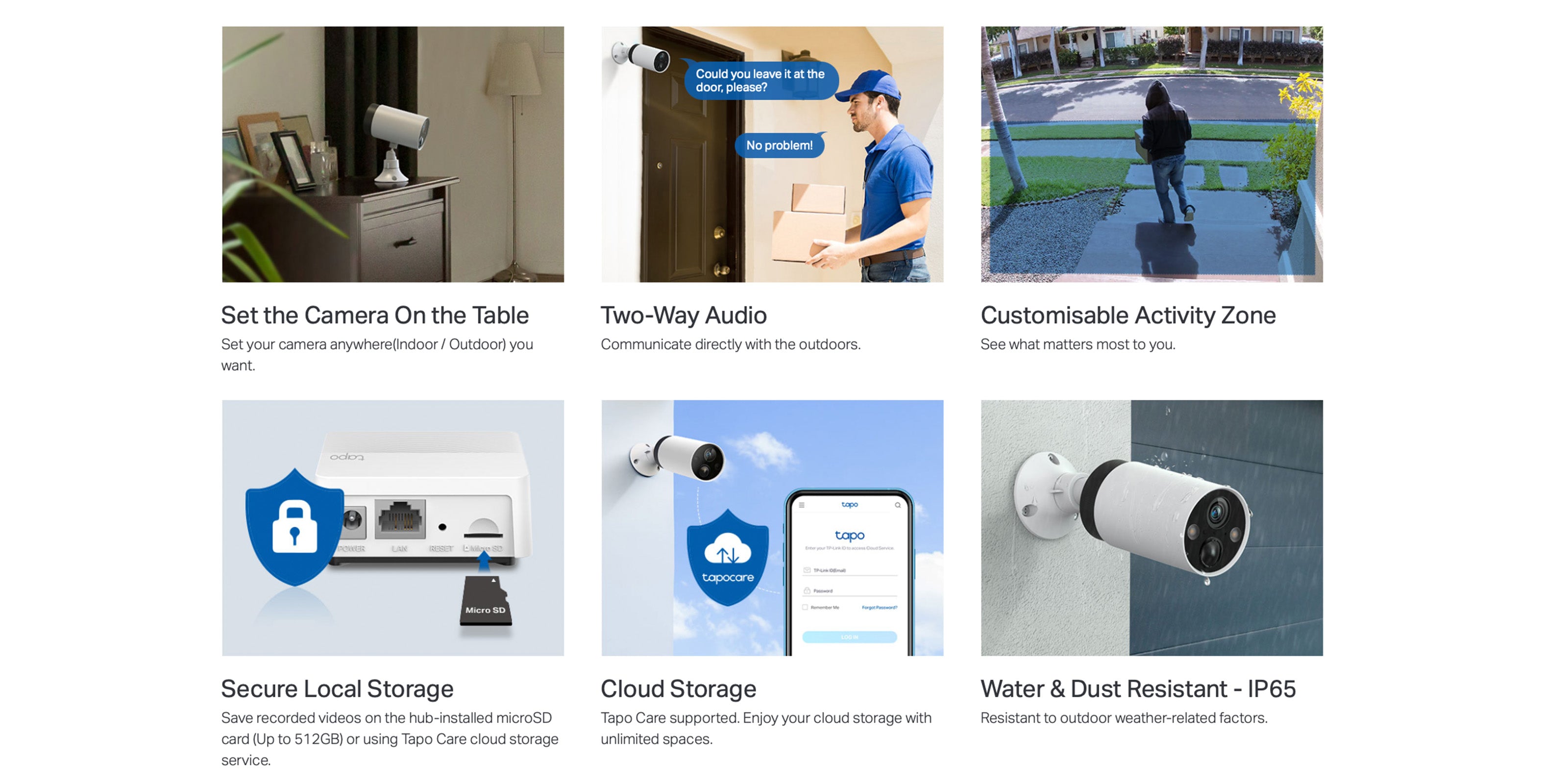 - Flexible Storage Choices-Save recorded videos on the hub-installed microSD card (up to 512 GB) or by using Tapo Care cloud storage services.