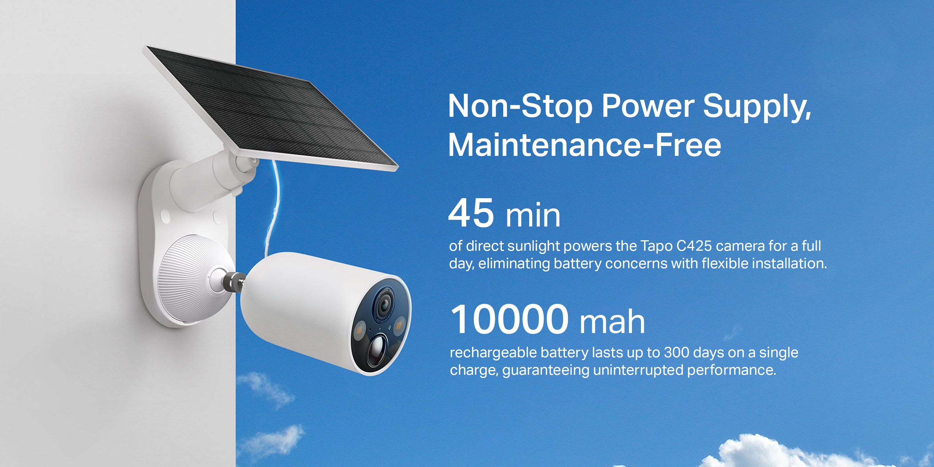 - Uninterrupted Solar Power: Enjoy a maintenance-free security experience with the Tapo Solar Panel, delivering continuous power supply and flexible installation without battery concerns.