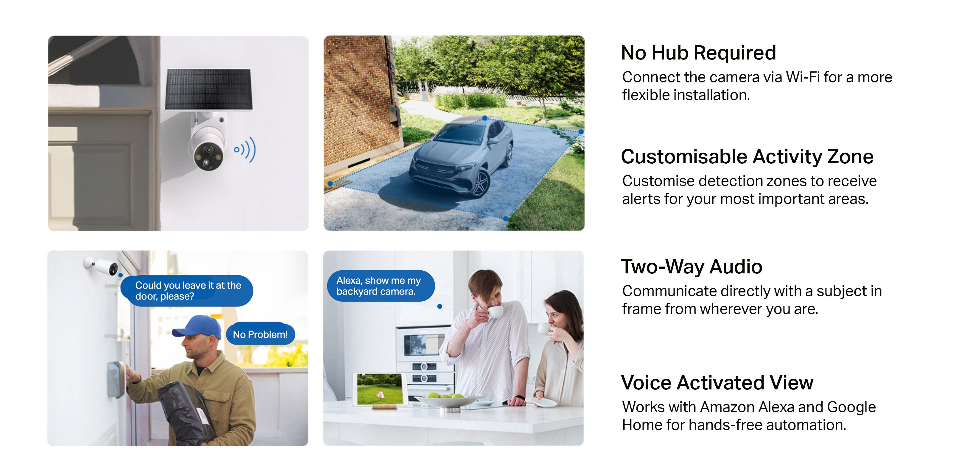 - Colour Night Vision with Starlight Sensor: Reveal brighter, full-colour images even in low-light conditions using the advanced starlight sensor and built-in spotlights.