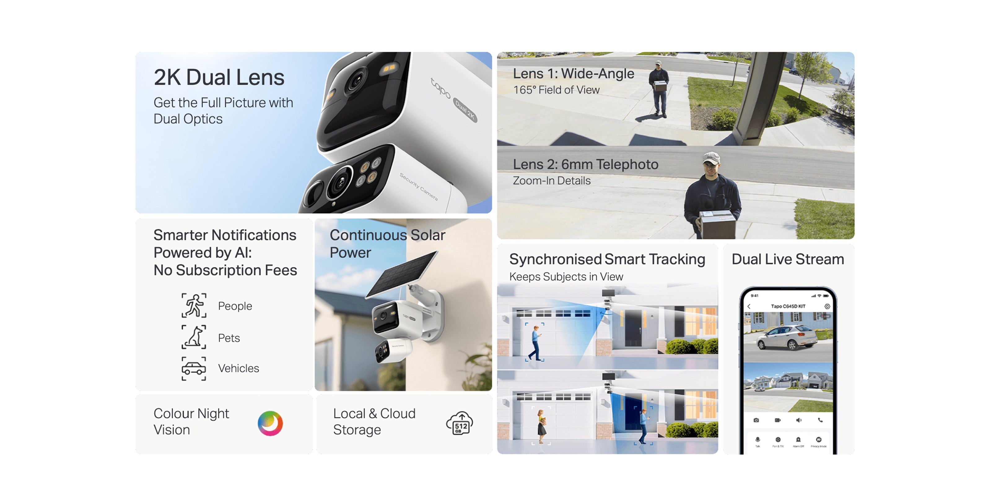 2K Dual-Lens Pan/Tilt Security Camera Kit, Tapo C645D KIT