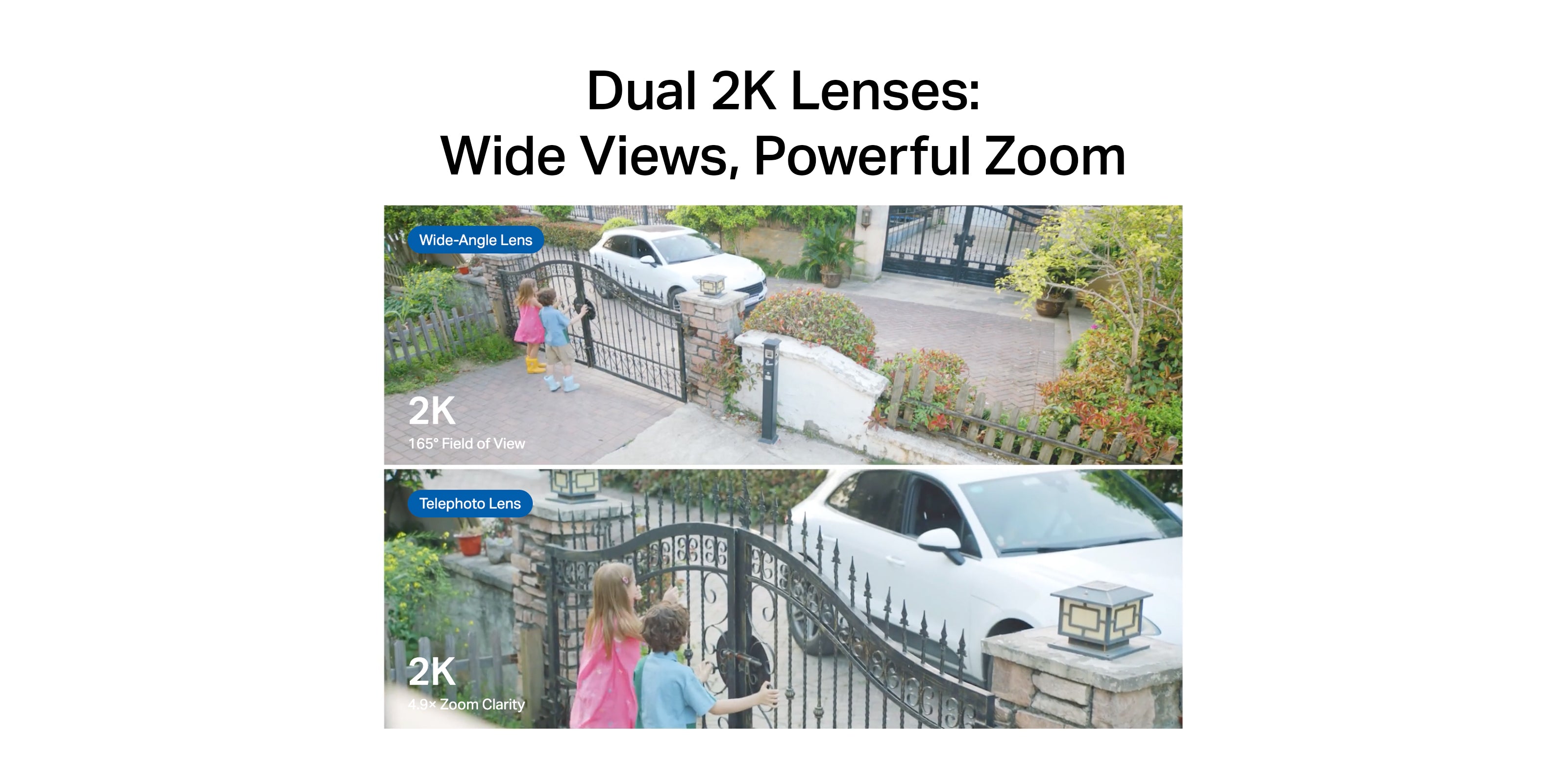 2K Crystal-Clear Vision: The dual-lens cameras deliver 2K 3MP resolution on both lenses, providing sharp and detailed imagery for superior monitoring.