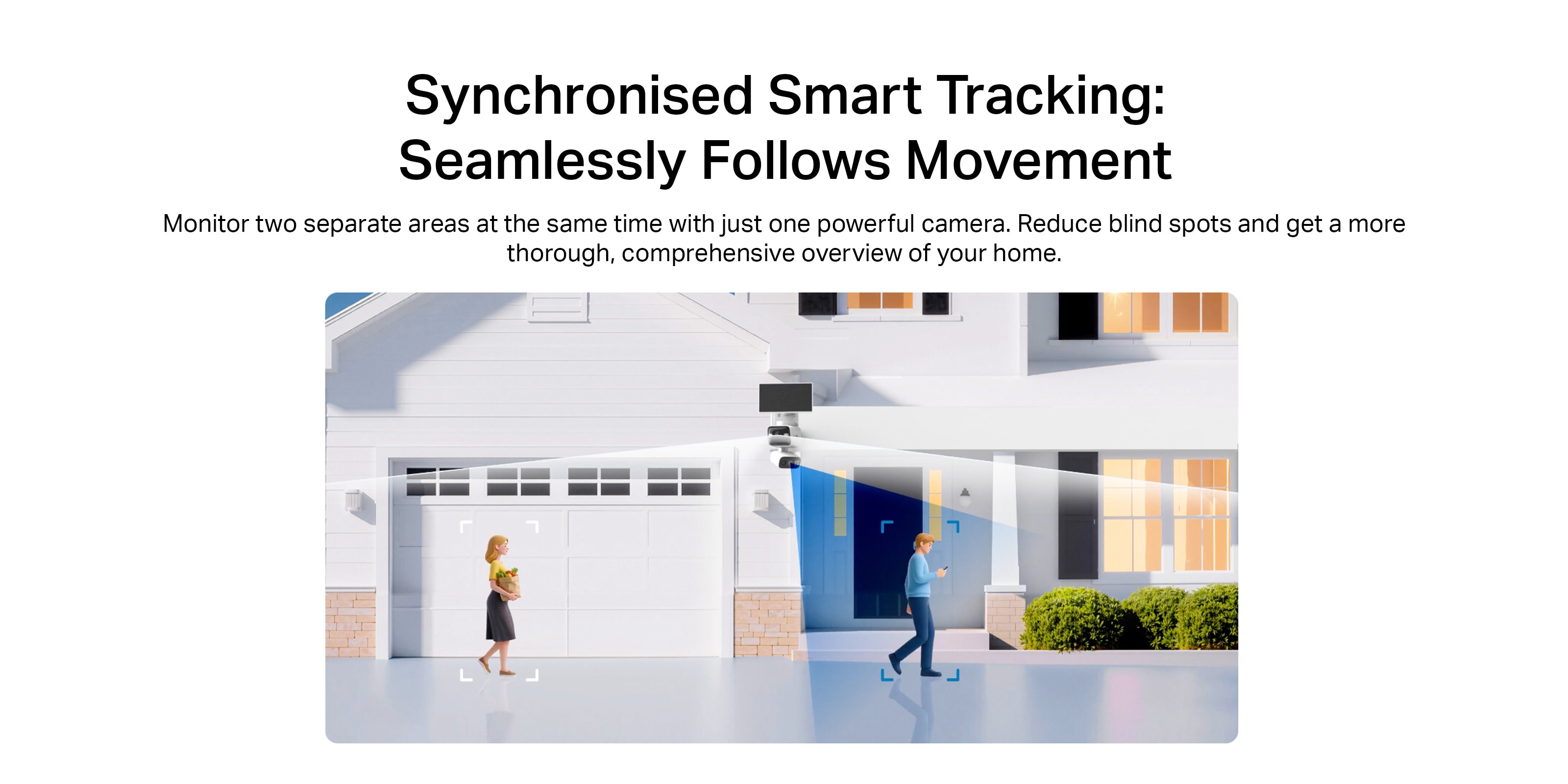 360° Intelligent Tracking: With dual lenses and AI-powered 360° tracking, the camera automatically follows people, vehicles, and pets to capture every moment.