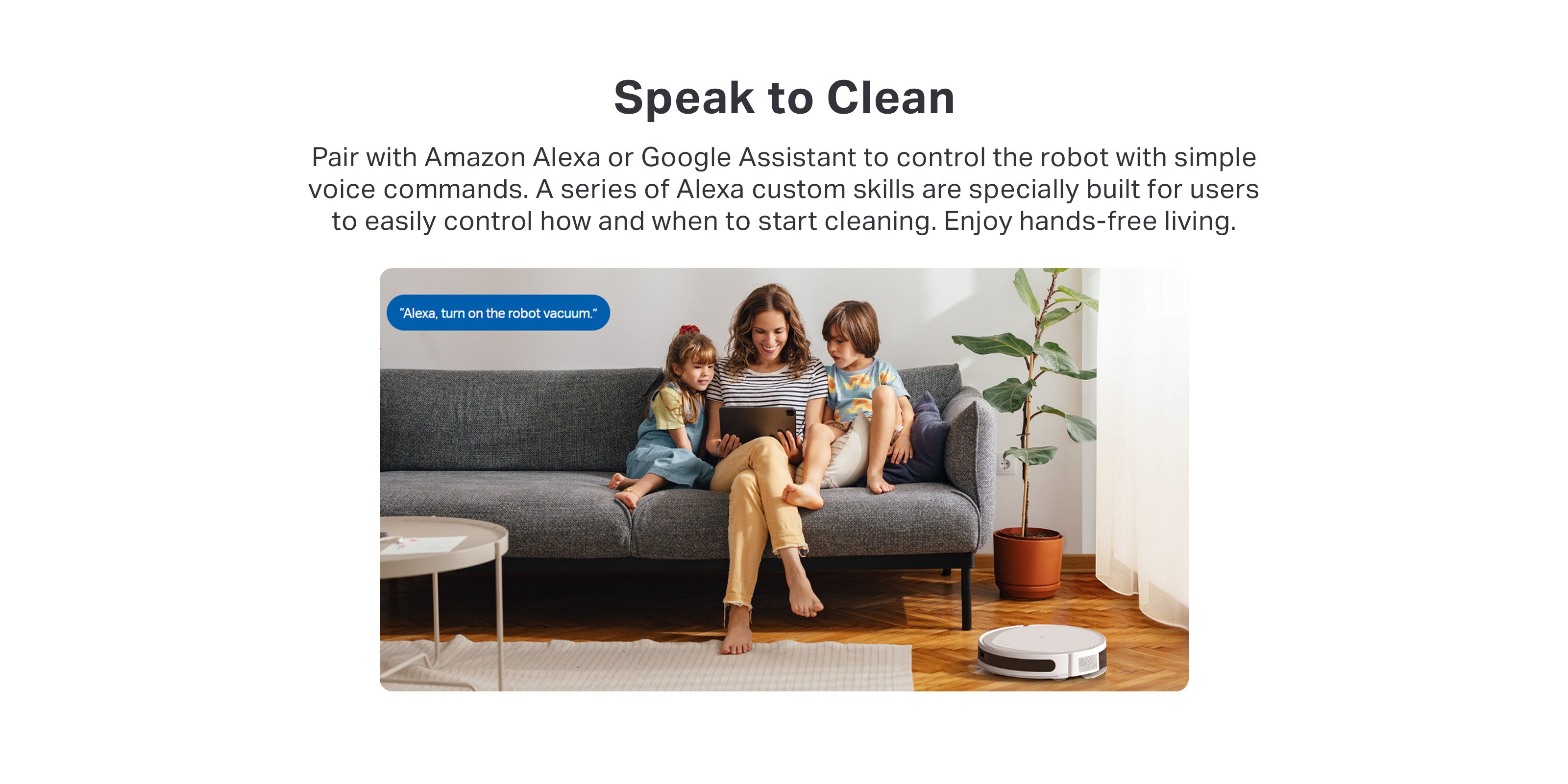- Voice & Remote Control - Pair with Amazon Alexa or Google Assistant to control the robot with simple voice commands. Enjoy hands-free living.