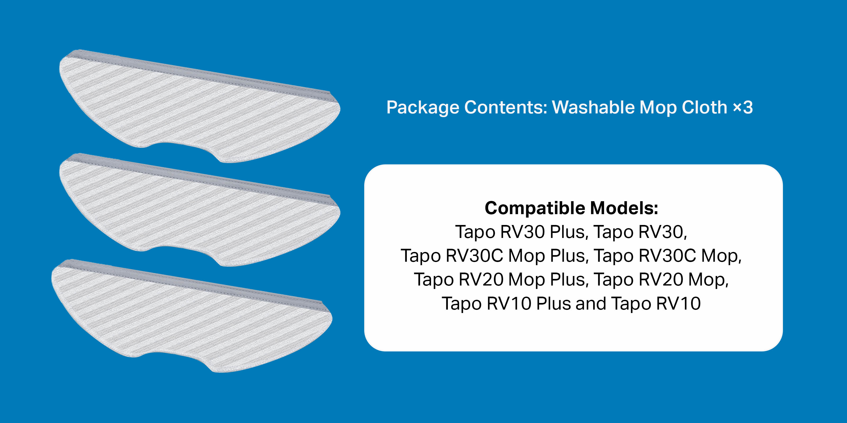 - Compatible Models: Tapo RV30 Plus, Tapo RV30, Tapo RV30C Mop Plus, Tapo RV30C Mop, Tapo RV20 Mop Plus, Tapo RV20 Mop, Tapo RV10 Plus, Tapo RV10
