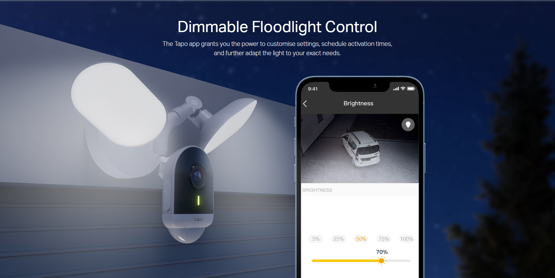 - Adjustable Floodlight Control: From setting schedules to adjusting brightness and activation triggers, the Tapo app is your one-stop shop for smart floodlight customisation.