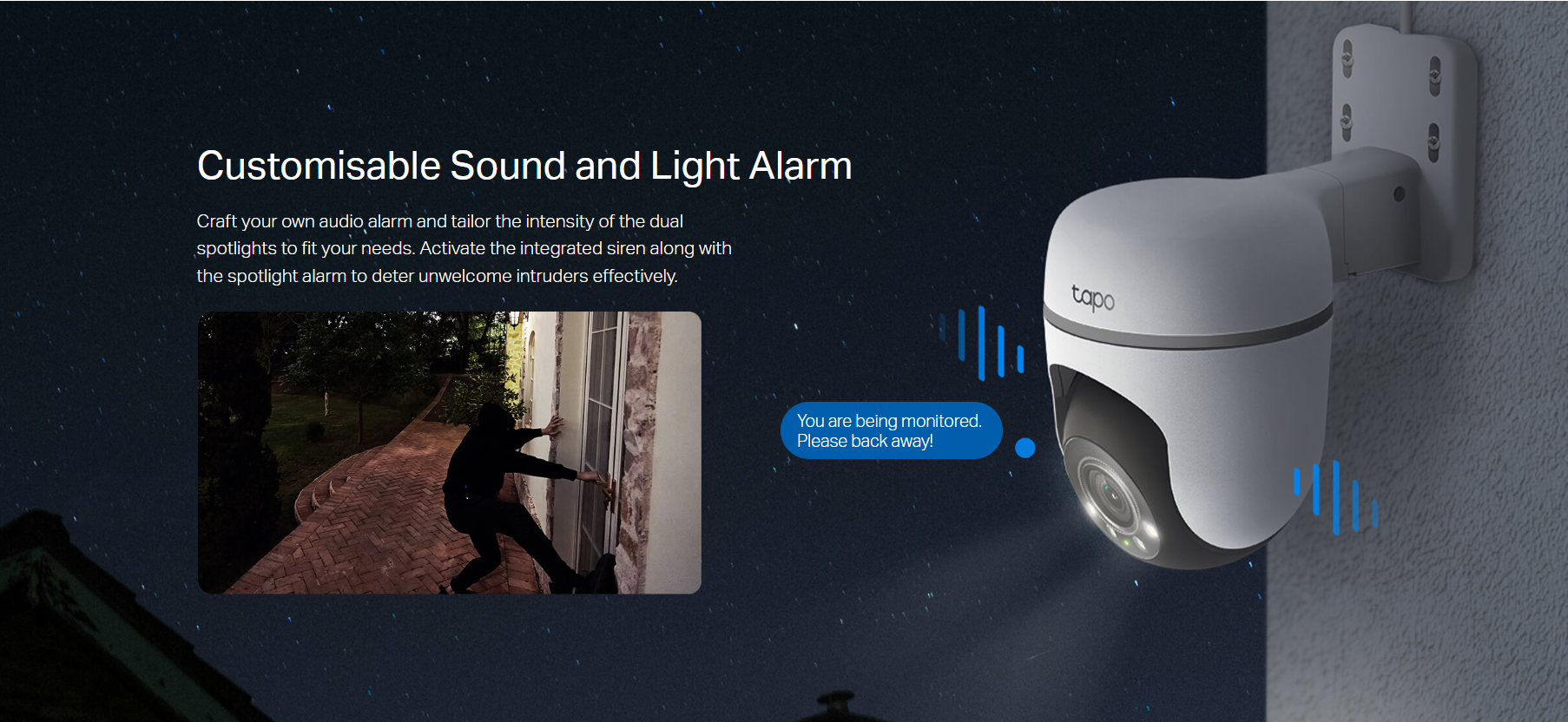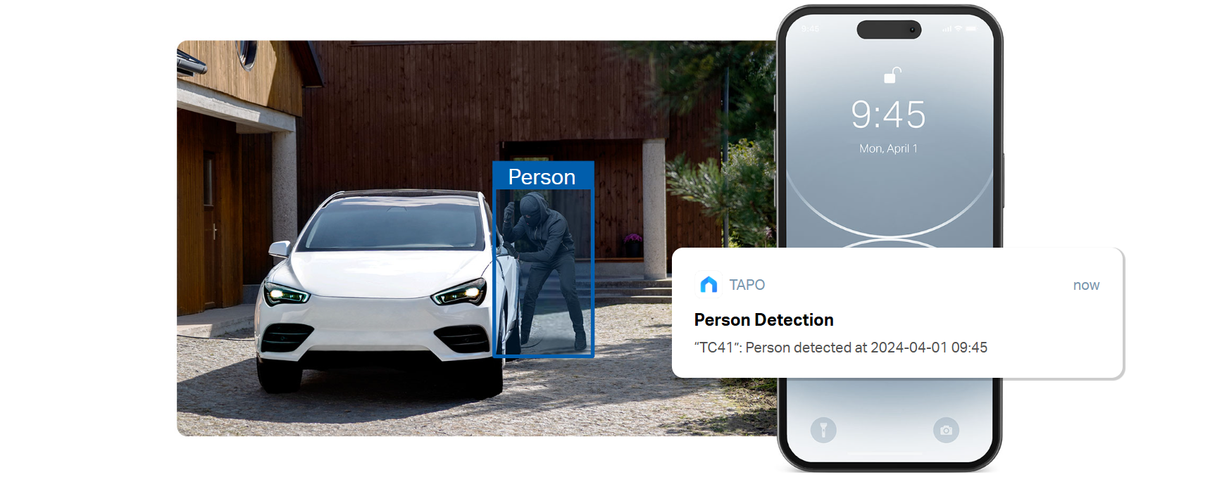 Smart AI identifies a person accurately, reducing false alarm and sending real-time notifications through the Tapo app.