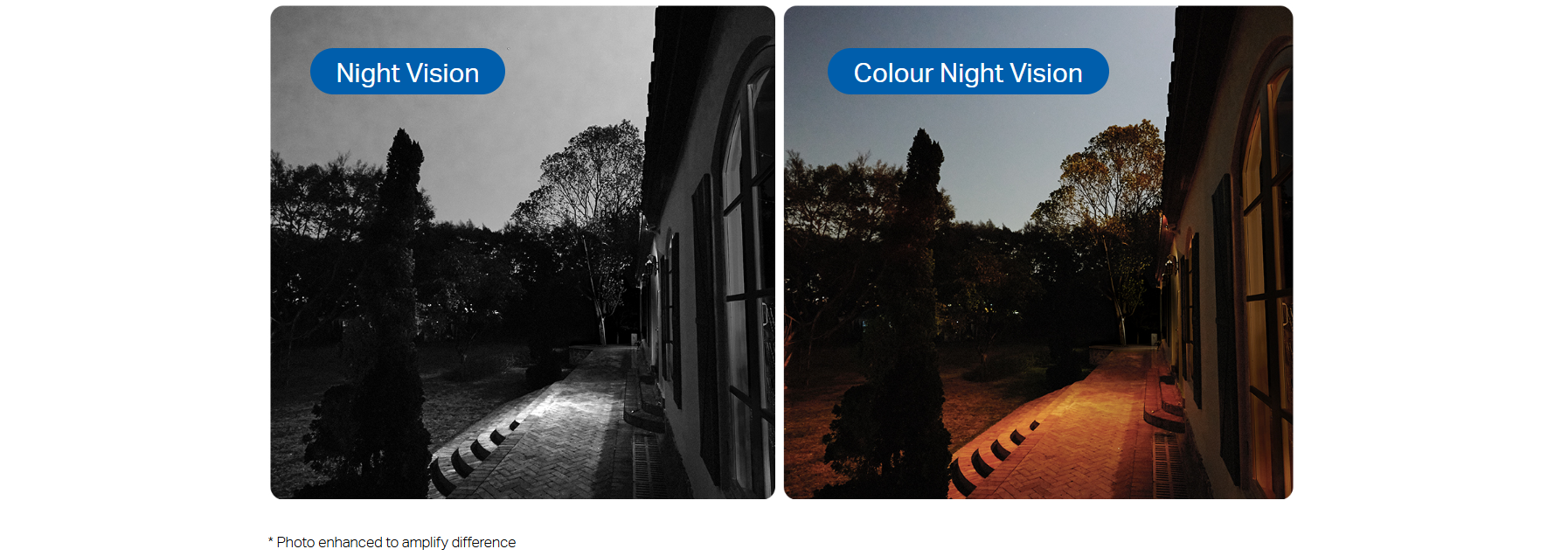 - Colour Night Vision-Reveals full-colour images with built-in spotlights even at night.