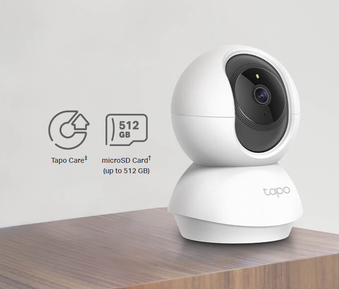 Save recorded video on a microSD Card†(up to 512 GB) or by using Tapo Care‡cloud storage services.
