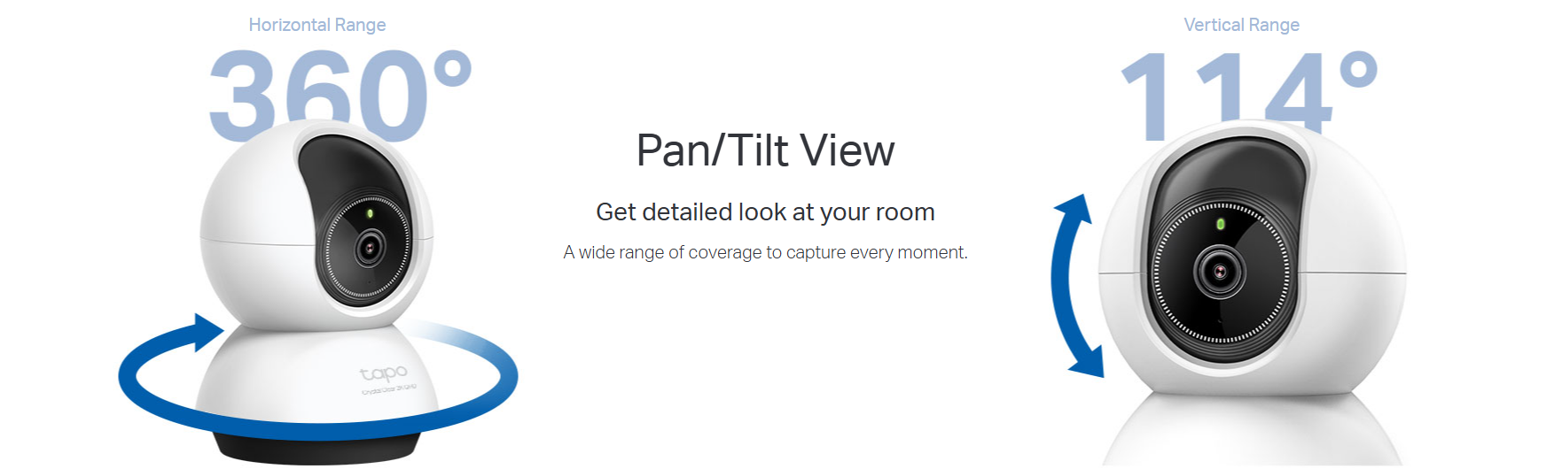 - Wide Range of Movement: Enjoy a full 360º horizontal and 114º vertical range for pan and tilt, allowing you to cover more area.