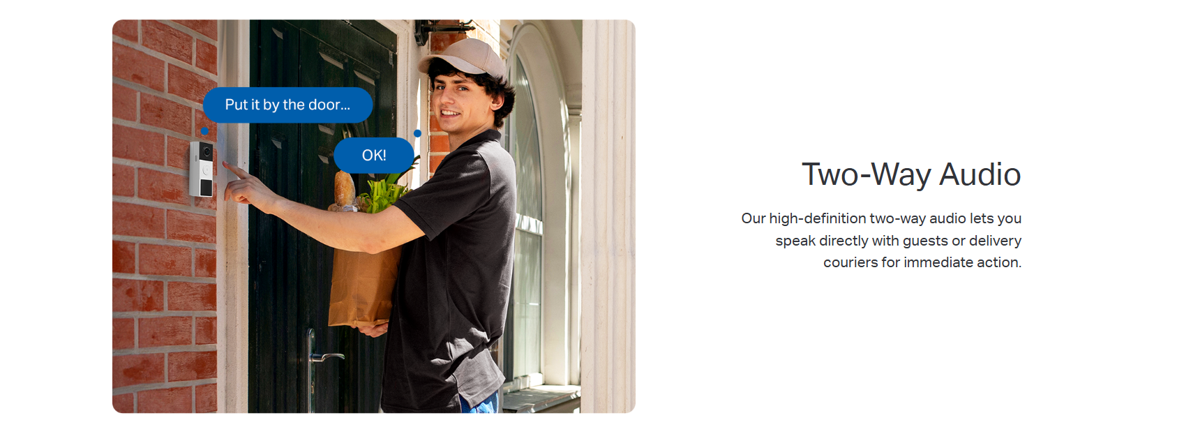 - Two-Way Audio: High-quality talk with premium mic and speakers.
